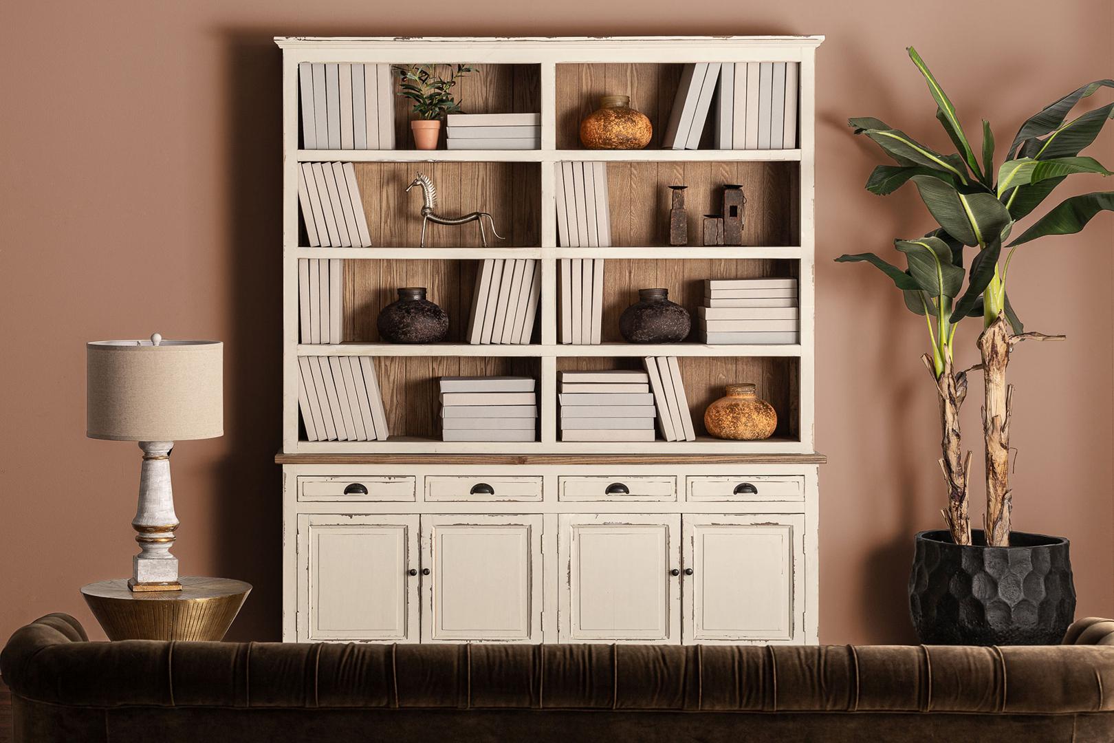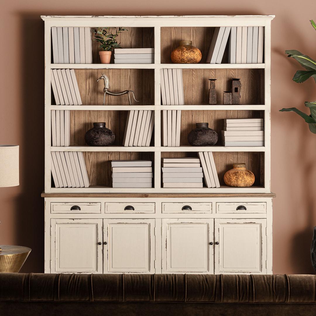 Книжный шкаф "PIVKA", цвет кремовый, стиль прованс. Изготовлен из древесины вяза.