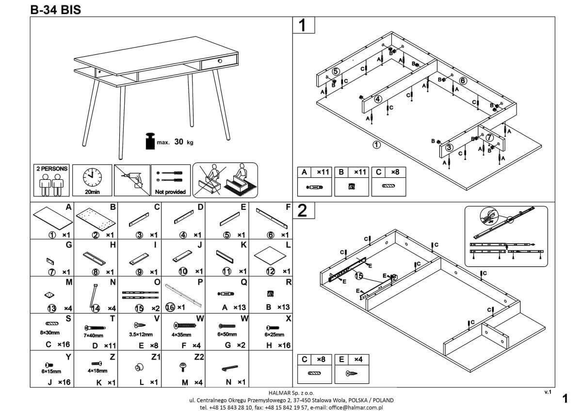 Компьютерный стол Halmar Стол компьютерный Halmar B-34 (дуб сонома/белый) арт. V-CH-B/34-BIS