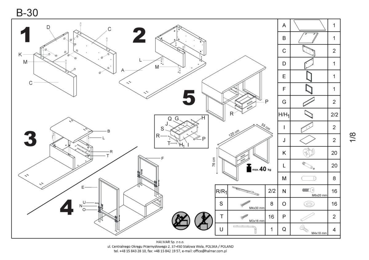 Компьютерный стол Halmar Стол компьютерный Halmar B-30 (белый/хром) арт. V-CH-B/30