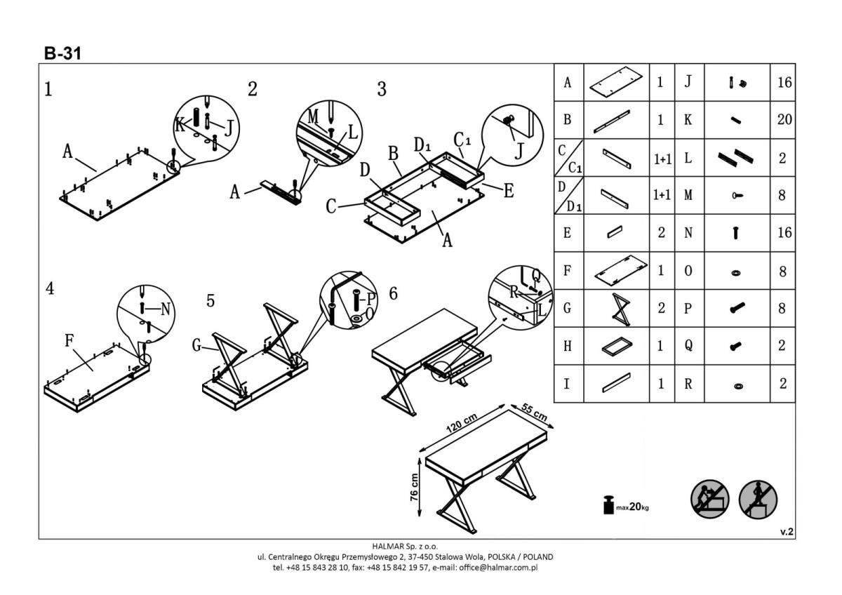 Компьютерный стол Halmar Стол компьютерный Halmar B-31 (белый/хром) арт. V-CH-B/31