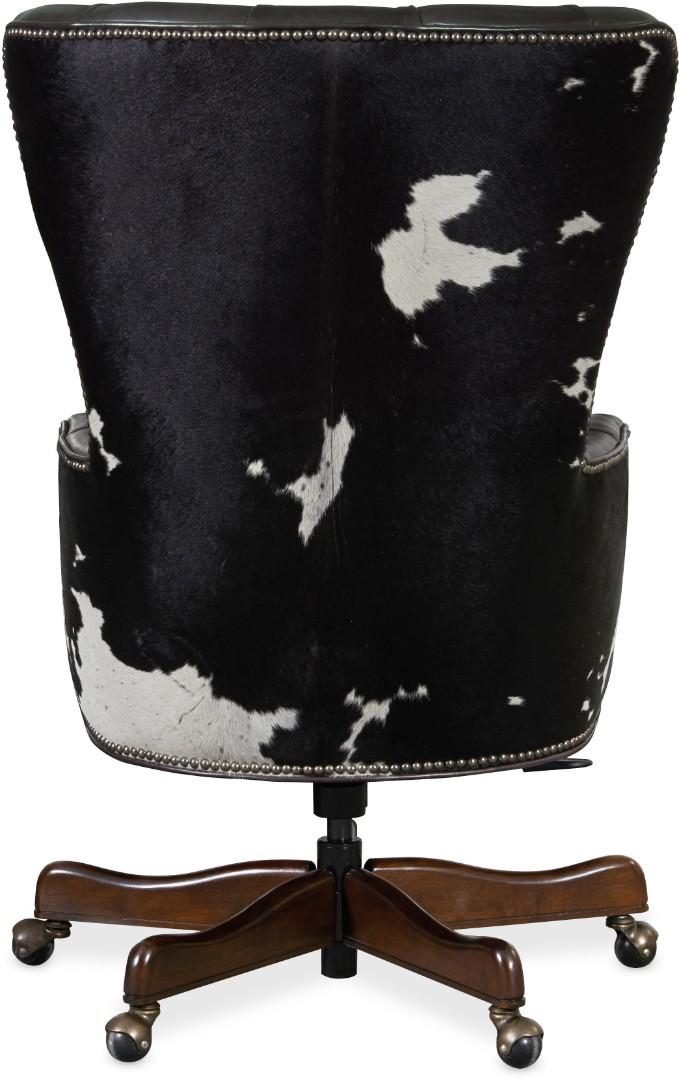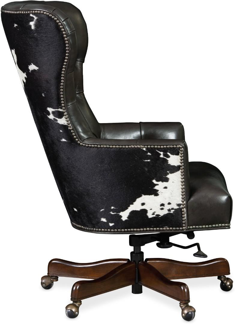 Офисное кресло выполнено в традиционном стиле. Каркас и основание кресла сделаны из дерева, сиденье и спинка полностью из кожи черно-белых цветов. Кресло оснащено регулировкой высоты сиденья, а также крестовиной с роликами. Стильный вид кресла несомненно послужит украшением вашего кабинета, а его комфортность и удобство станут дополнительными бонусами. Отличный выбор для тех, кто ищет интересные решения.