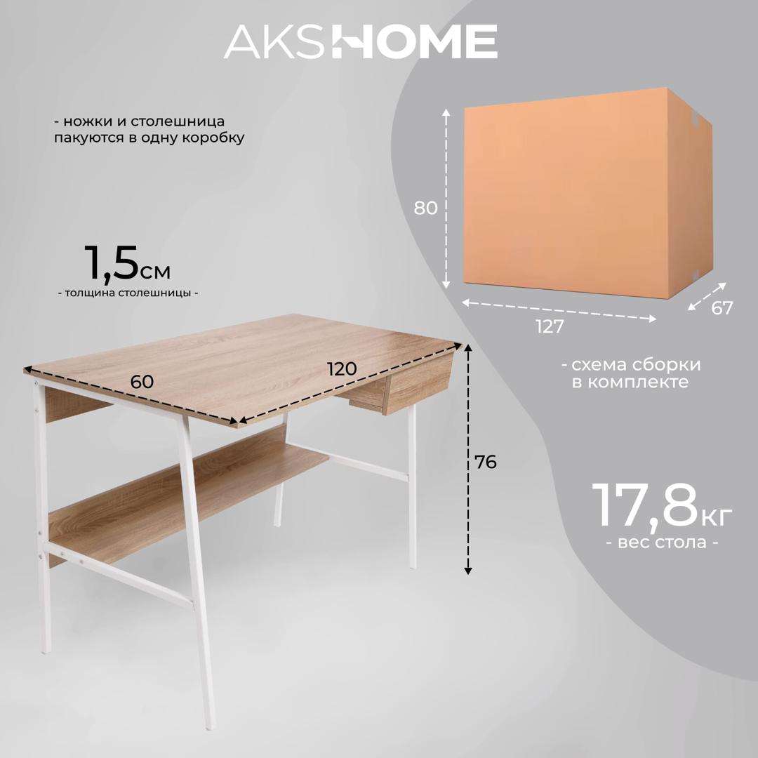 Стол письменный AksHome Стол письменный Amber, светлый дуб, лдсп арт. ZN-126301