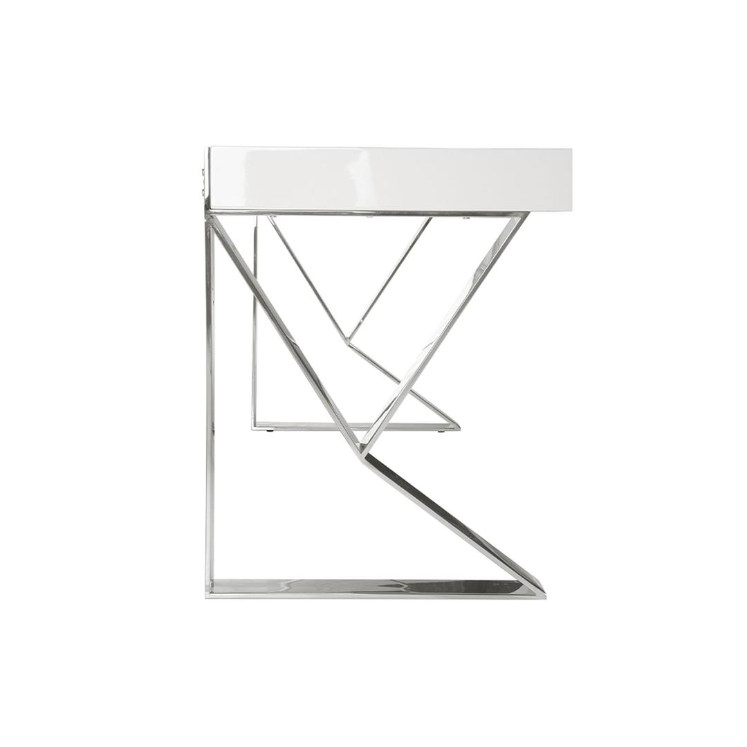 Стол Confort из одноименной коллекции от фабрики Angel Cerda — впечатляющие ножки для стильного городского интерьера. Стол моментально привлекает внимание своими оригинальными ножками. Сложная рамочная конструкция выглядит эффектно и, при этом, убеждает в хорошей устойчивости изделия. Прямоугольная столешница выполнена в минималистическом стиле. Ящиков почти не видно, ничто не отвлекает от работы. Стол имеет традиционную прямоугольную форму. Столешница сделана из толстого МДФ высокого качества. В зависимости от выбранной модели, ее цвет может быть белым глянцевым, либо цветом «орех». Спереди два одинаковых выдвижных ящика. Они снабжены доводчиками на открывание и закрывание, а также прочными металлическими направляющими, гарантирующими долгую эксплуатацию без поломок. Стойка сделана из хромированного металла. Этот материал прочный и долговечный, поэтому данная модель способна выдерживать высокие весовые нагрузки. Рамочная конструкция обеспечивает большую площадь опоры, поэтому стол будет устойчив на любом напольном покрытии. Модель выполнена в современном стиле, поэтому отлично впишется в городской интерьер, где приветствуются европейские тенденции. Размеры: длина — 120 см, глубина — 61 см, высота — 76 см. Потребуется несложная сборка. Инструкция и крепеж — в комплекте. Отделка - лак RAL9003 White Gloss.