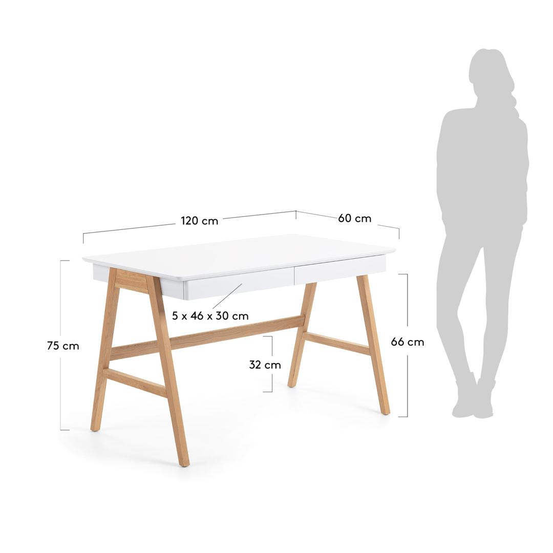 Письменный стол INGO от фабрики La Forma (ex Julia Grup) — испанский подход к созданию стильного рабочего места. Просто неповторимый стол! Необычная конструкция мгновенно привлекает внимание. Выходящие за грани столешницы ножки — это явно не элемент классического предмета мебели для работы. Поэтому стол подойдет творческим людям, которым важно вдохновляться всегда и во всем, даже собственным письменным столом! Данный предмет мебели создан в современном стиле, поэтому легко впишется в любую квартиру, оформленную в том же направлении. Его можно использовать как для работы за ноутбуком, так и для решение повседневных задач. Цветовая палитра универсальная. Столешница — белая. Она имеет классическую прямоугольную форму и снабжена выдвижным ящиком. В данном случае дизайнеры не стали отвлекать внимание от лаконичного вида рабочего пространства ручкой для ящика. Ее нет. Но благодаря небольшому нажатию, он легко будет выдвигаться. В ящике можно хранить канцелярские приборы, бумаги, документы и прочие вещи. Ножкам оставлен натуральный цвет. Они сделаны из дерева и расставлены в стороны, подобно конструкции стремянки. Это необычное решение выглядит не только оригинально, но и гарантирует столу хорошую устойчивость. Для нее же предусмотрена поперечная балка, соединяющая обе пары ножек. Размеры — 120 см × 75 см × 60 см (ширина, высота, глубина). Вес — 24,3 кг. Также фабрика La Forma (ex Julia Grup) производит и другие модели письменных столов, с которыми можно ознакомиться здесь же.