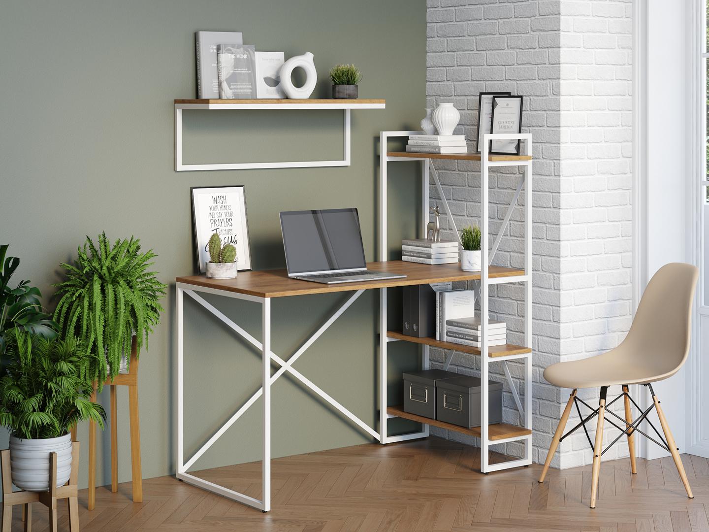 Стол письменный LoftyHome Стол письменный Мальборк Практик-П Дуб Золотой с белым основанием лофт арт. 1627826