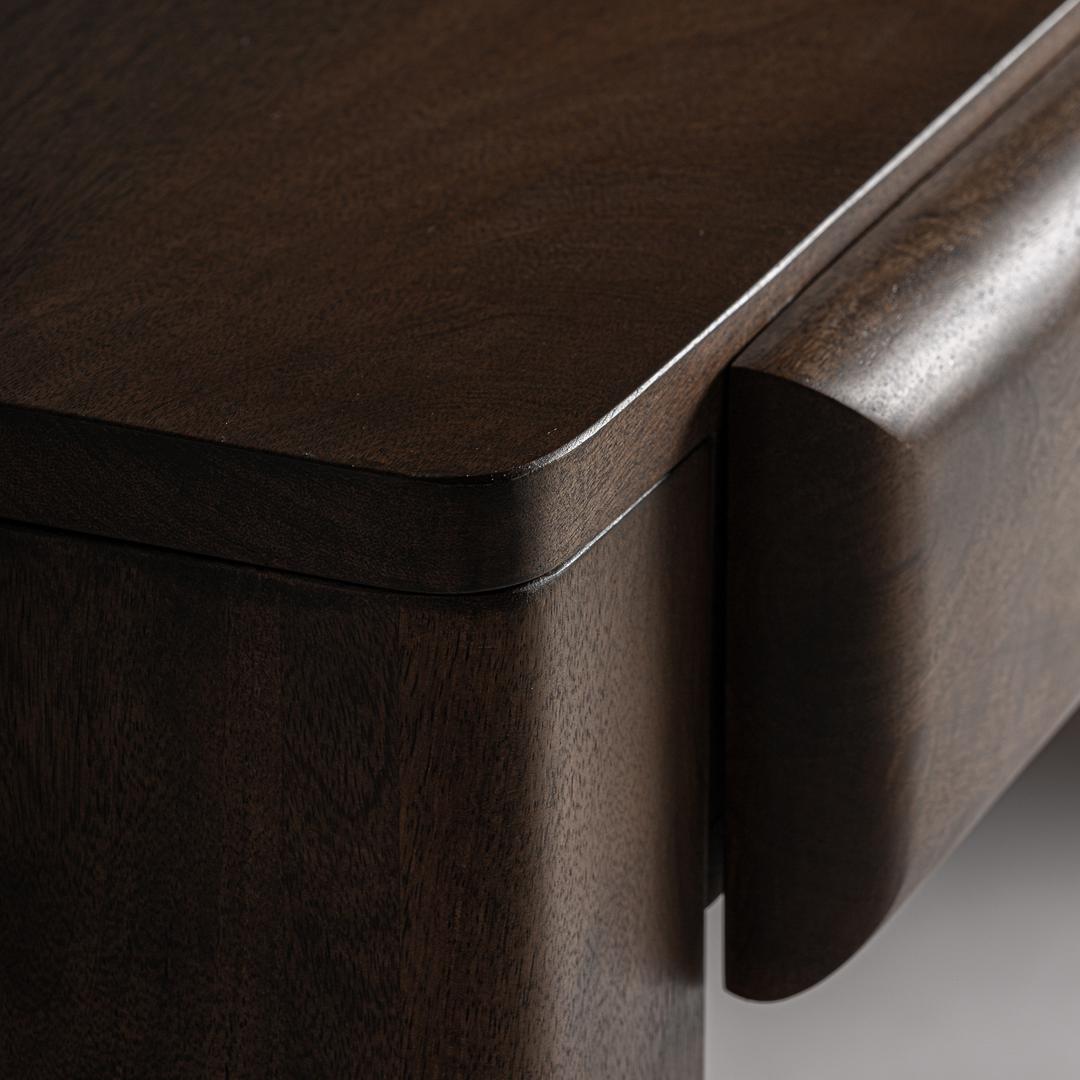 Письменный стол, коричневый цвет, стиль арт-деко. Изготовлен из дерева манго. Съемное изделие.