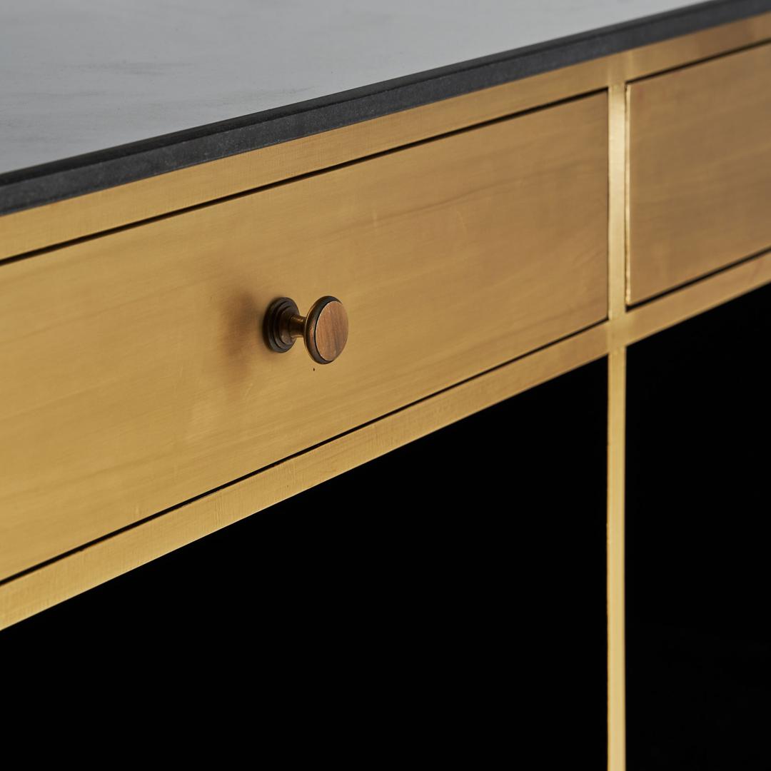 Письменный стол VALBRUNA, цвет золота, стиль арт-деко. Изготовлен из железа в сочетании с мрамором.