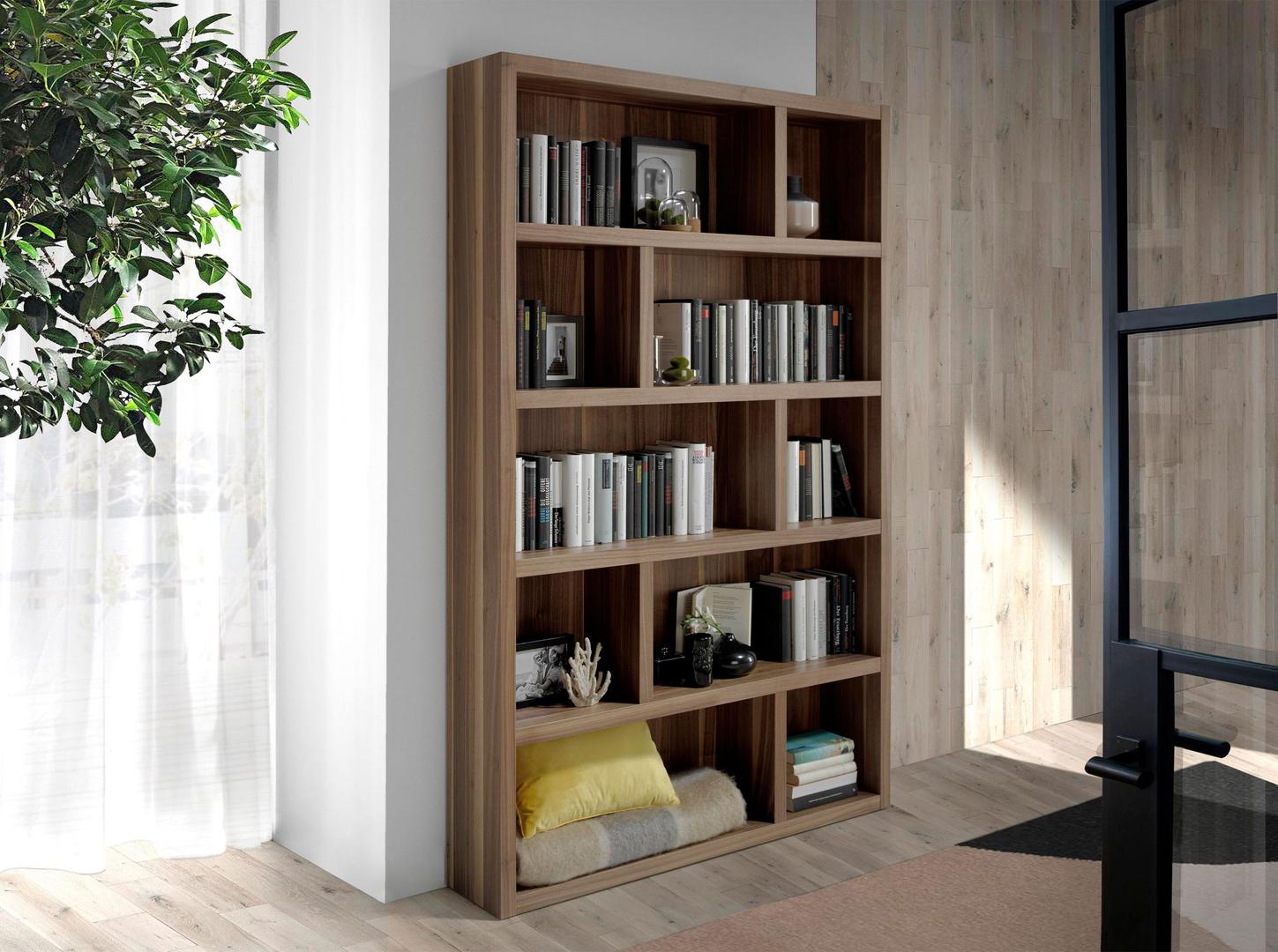 Стеллаж GOB-N5402-3 /3180 от фабрики Angel Cerda – традиционная форма и функциональная геометрия внутри. Стеллаж станет замечательным дополнением к современному дизайну. В нем модный цвет орехового дерева и мощные перегородки создают достойный внешний вид и обеспечивают надежность во время эксплуатации. Впечатляющие габариты в сочетании с правильной внешней геометрией – это возможность разместить все книги в одном месте, не навредив общей концепции помещения. Стеллаж гармоничен и прекрасен. Он достоин стать частью вашей гостиной. Стеллаж прямоугольной формы. Он полностью сделан из МДФ, которая облицована натуральным ореховым шпоном толщиной в 0,5 мм. Зерна вершины древесины здесь показаны ярко и крупно, что обеспечивает эффектный внешний вид стеллажу и свою уникальность. Внутреннее наполнение включает 10 полок в двух размерах, которые находятся на пяти уровнях. Рекомендуемая нагрузка на каждую полку – не более 5 кг. Размеры стеллажа: ширина – 126 см, высота – 197 см, глубина – 25 см. Вес – 86 кг. Потребуется небольшая самостоятельная сборка. Инструкция и крепеж включены в комплектацию. В коллекции мебели Angel Cerda еще представлен узкий стеллаж 3172, выполненный в аналогичном дизайне.