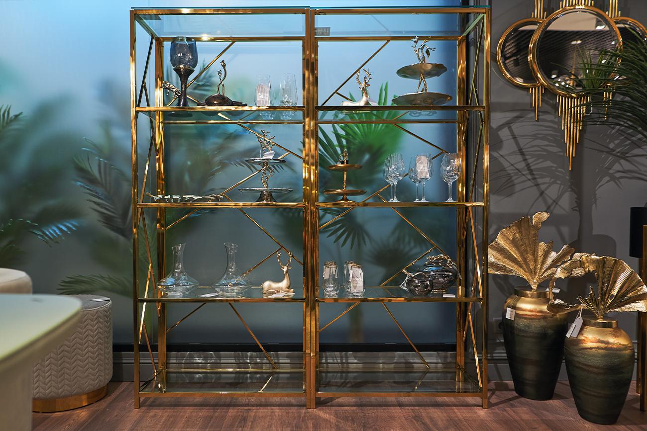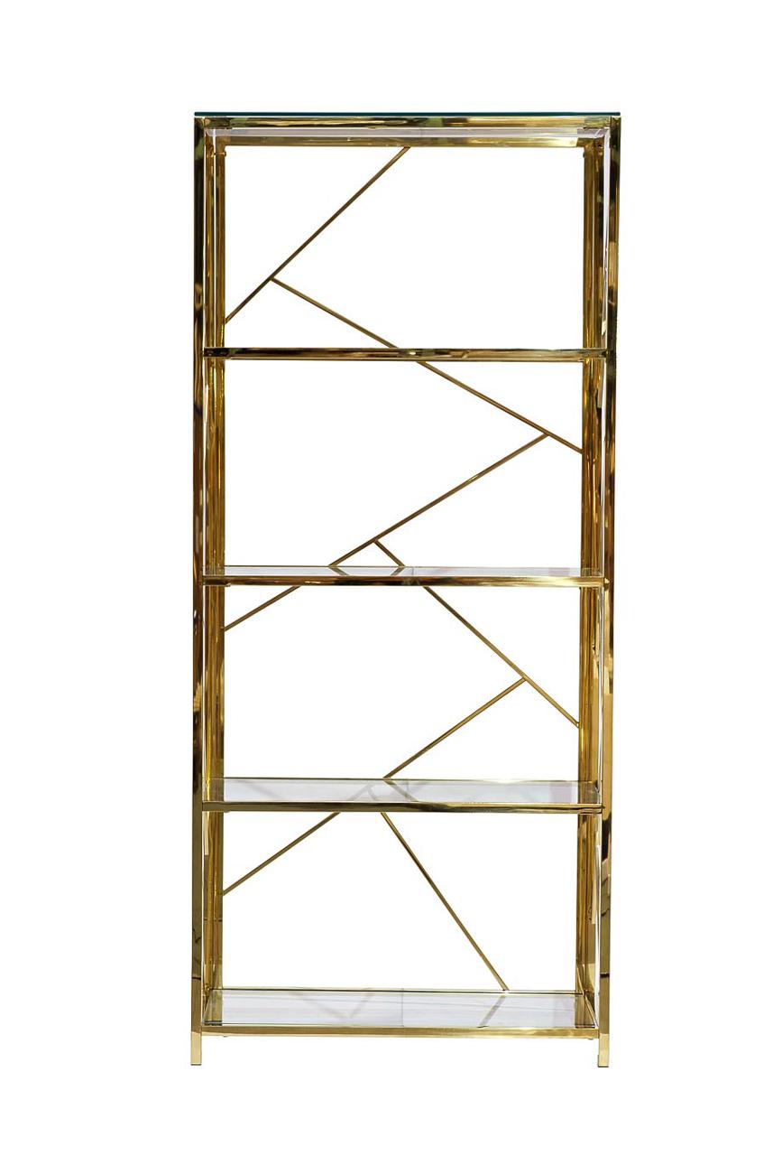description-full - Хит продаж! Изысканный стеллаж из полированной нержавеющей стали золотого цвета с полками из прозрачного закаленного стекла. Нагрузка на полку до 10кг , поэтому вы можете хранить в стеллаже не только наградные кубки, посуду или статуэтки, но и даже книги. Стеллаж станет настоящим украшением комнаты в стиле ар-деко или бохо-шик. У нас вы можете приобрести консоль арт. GY-CST2051214GOLD, журнальные столики арт. GY-CT2051214GOLD, арт. GY-ET2051214GOLD и банкетку арт. GY-BEN7835GOLD-BL из этой же серии.