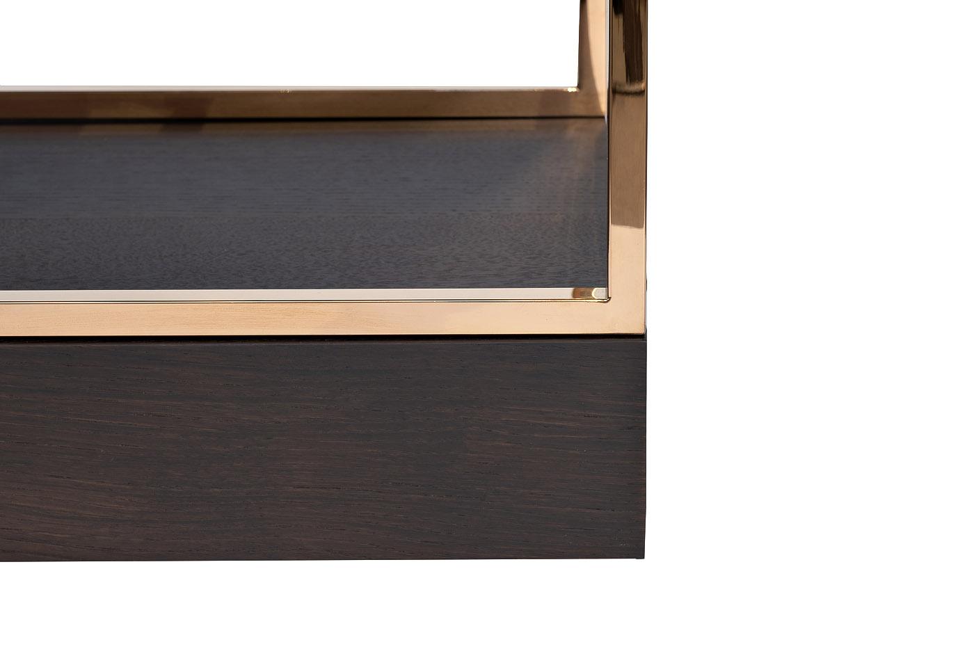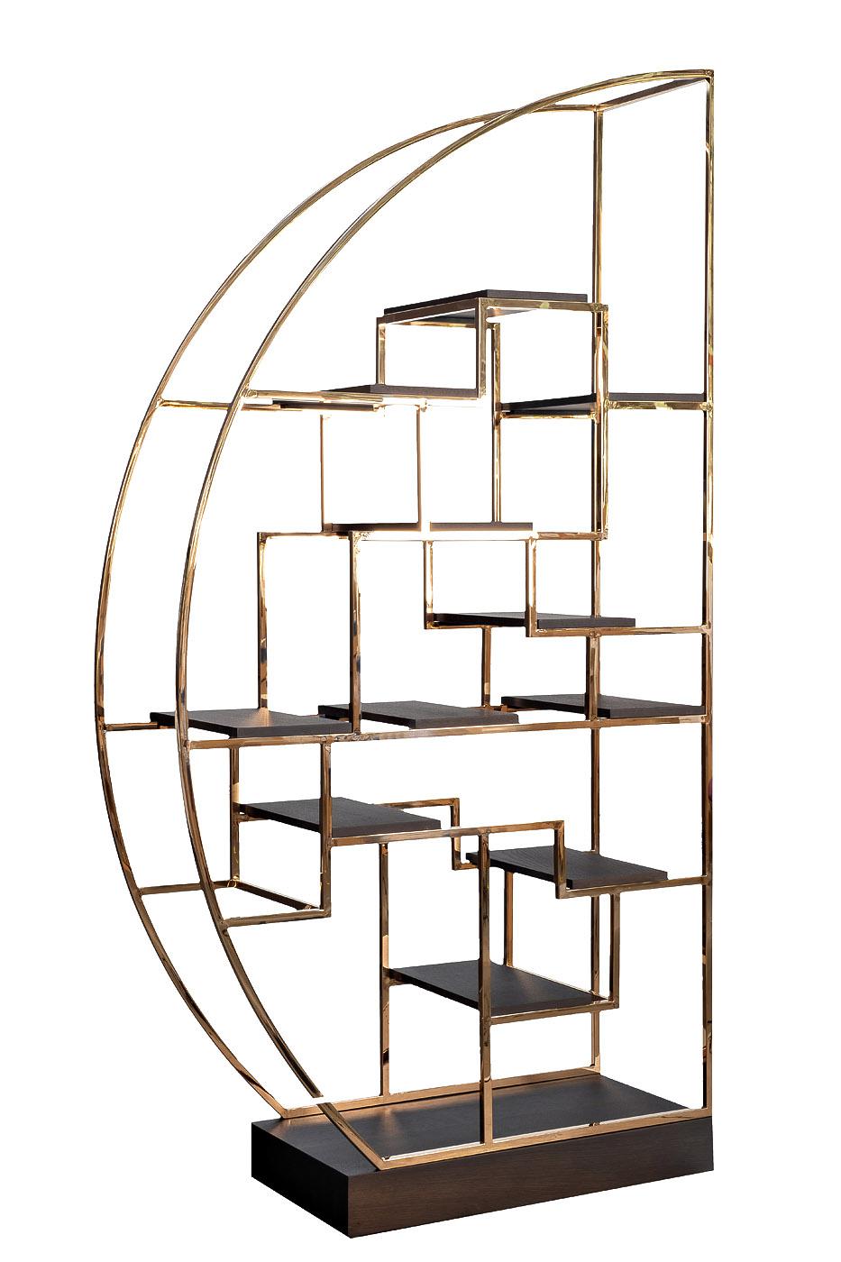 description-full - Великолепный дизайнерский стеллаж станет настоящим украшением просторной гостиной или кабинета. Каркас из полированной стали цвета розового золота дополнен основанием и ассиметрично расположенными полками, отделанными темным шпоном. Стеллаж, напоминающий парус, прекрасно смотрится как в одиночку, так и в паре с другим стеллажом, расположенным зеркально. Вазы, статуэтки, книжные тома и спортивные кубки получат достойное обрамление. Стеллаж выглядит дорого, модно и элегантно. Это любимый предмет интерьера многих современных дизайнеров, предпочитающих открытые полки и стеллажи в качестве альтернативы традиционным витринам и шкафам.