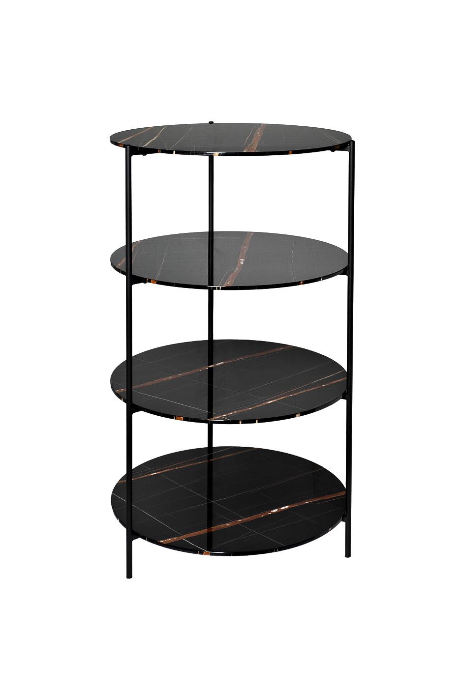 description-full - Стеллаж с круглыми полками разработан специально для того, чтобы эстетично дополнить пространство. Стильный чёрный стеллаж украсит помещение за счёт своего лаконичного, но оригинального дизайна. 4 полки стеллажа позволяют использовать мебель в качестве открытой витрины. Изделие выполнено исключительно из качественных и износостойких материалов, поэтому оно долговечно и не изменит свой внешний вид за длительный срок эксплуатации. Благодаря своему оригинальному дизайну такой предмет интерьера подойдет для использования в домашней обстановке или в офисном помещении. Толщина полок - 12мм.