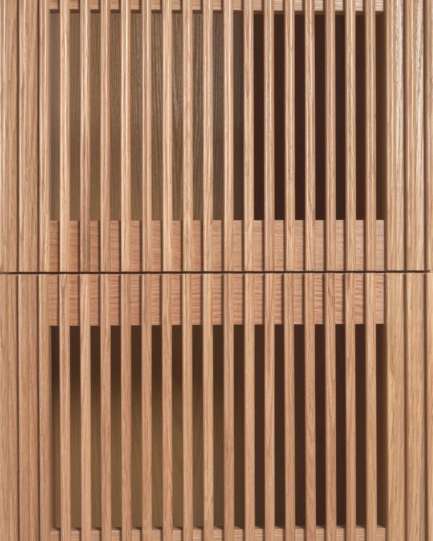 Beyla сочетает в себе естественную сущность дуба с решетчатыми дверями, создавая игру света и текстуры. И это сделано с вниманием к деталям, которого заслуживает отличный дизайн. Раздвижные двери из массива дуба и корпус из шпона дуба. Крючки для крепления к стене и регулируемые ножки.