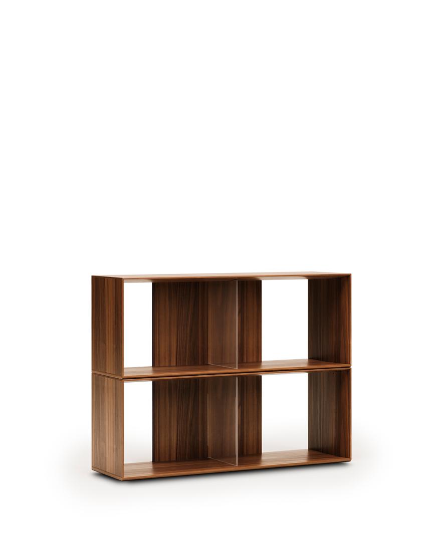 Набор из 2 больших модульных полок из шпона орехового дерева. Можно комбинировать с остальными модулями из коллекции. Включает в себя металлические кронштейны для крепления модулей друг к другу и к стене. Ноги не включены. Для каждого модуля, стоящего на полу, требуется набор из 5 ножек.
