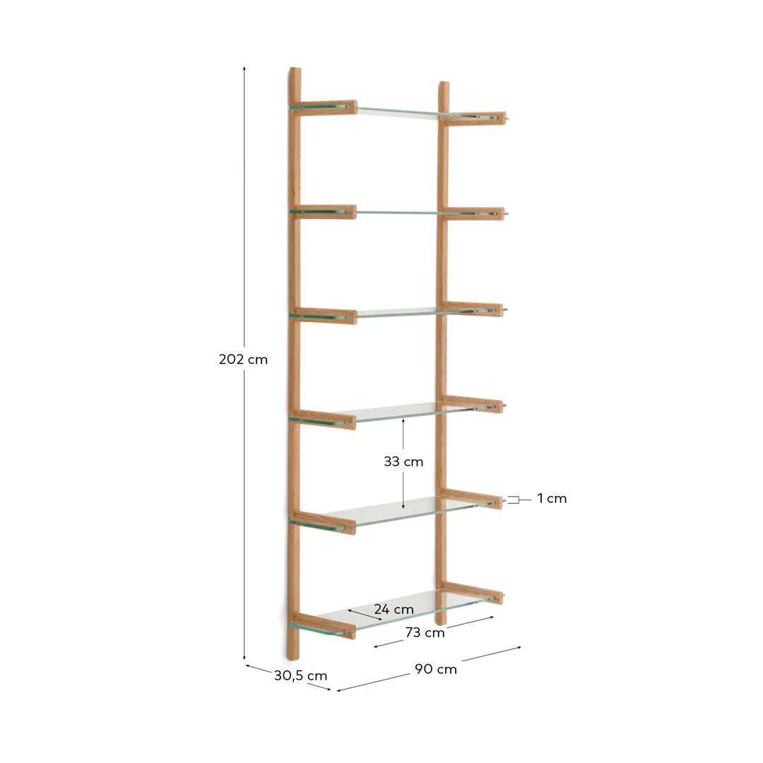 Стеллаж La Forma (ех Julia Grup) Модульный стеллаж Sitra из массива дуба с 6 стеклянными полками арт. 210071