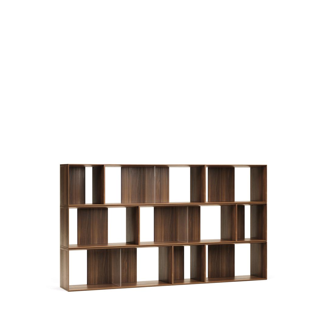 Набор из 3 малых модульных полок, 3 средних модульных полок и 3 больших модульных полок из орехового шпона. Можно комбинировать с остальными модулями из коллекции. Включает в себя металлические кронштейны для крепления модулей друг к другу и к стене. Ноги не включены. Для каждого модуля, стоящего на полу, требуется набор из 5 ножек.