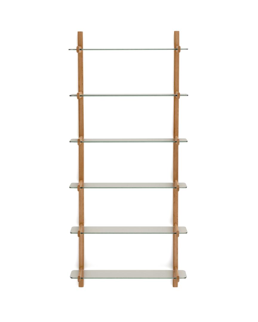 Стеллаж La Forma (ех Julia Grup) Модульный стеллаж Sitra из массива дуба с 6 стеклянными полками арт. 210071