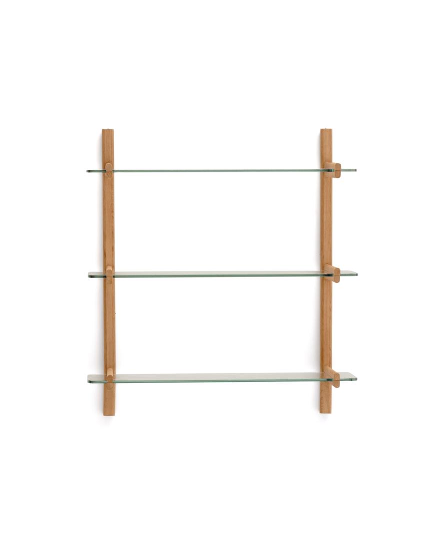 Стеллаж La Forma (ех Julia Grup) Модульный стеллаж Sitra из массива дуба с 3 стеклянными полками арт. 210073