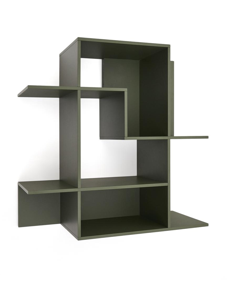 Модульная стеллажная система Ina изготовлена из МДФ, покрытого зелёным лаком в 3 слоя нитроцеллюлозного лака, что придаёт ей гладкий и привлекательный вид. Система крепления позволяет регулировать стеллаж по горизонтали или вертикали, что даёт возможность создавать собственные проекты и композиции. Конструкция позволяет поворачивать модули на 90 градусов, что обеспечивает универсальность и оригинальность для любого пространства. Кроме того, модули всегда можно комбинировать, чтобы создать собственную полку. Задние панели крепятся на магнитах и легко снимаются с помощью защёлки.