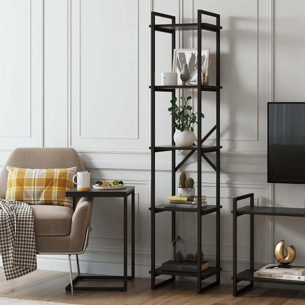 Высокий и узкий стеллаж - прекрасное дополнение для того самого угла, в который очень хочется что-то поставить. Он не отнимает пространство и позволяет разместить вещи, которые всегда должны быть под рукой. В прихожей он станет классным местом для хранения ключей и прочих бытовых мелочей. А в ванной он пригодится, чтобы расставить на нем все эти бесконечные баночки и шампуни. Полки изготовлены из ЛДСП толщиной 16 мм. Каркас выполнен из цельносварного стального профиля с порошковым покрытием, ширина профиля - 20*20 мм. К стеллажу идеально подойдут другие предметы коллекции Мальборк - письменный стол Кросс, полки Флэт и мини-стеллажи Рант. В коллекции есть всё для создания идеального интерьера. Поставляется в разобранном виде, но очень прост в сборке - необходимо прикрепить полки к стойкам каркаса саморезами. Саморезы предполагают отсутствие отверстий на полках - они сами сделают отверстия, крепко присоединяя полки к основанию. Вам понадобится только крестовая отвертка.