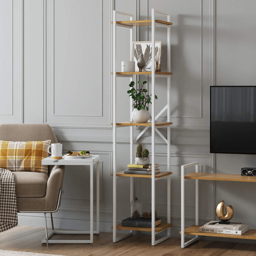 Высокий и узкий стеллаж - прекрасное дополнение для того самого угла, в который очень хочется что-то поставить. Он не отнимает пространство и позволяет разместить вещи, которые всегда должны быть под рукой. В прихожей он станет классным местом для хранения ключей и прочих бытовых мелочей. А в ванной он пригодится, чтобы расставить на нем все эти бесконечные баночки и шампуни. Полки изготовлены из ЛДСП толщиной 16 мм. Каркас выполнен из цельносварного стального профиля с порошковым покрытием, ширина профиля - 20*20 мм. К стеллажу идеально подойдут другие предметы коллекции Мальборк - письменный стол Кросс, полки Флэт и мини-стеллажи Рант. В коллекции есть всё для создания идеального интерьера. Поставляется в разобранном виде, но очень прост в сборке - необходимо прикрепить полки к стойкам каркаса саморезами. Саморезы предполагают отсутствие отверстий на полках - они сами сделают отверстия, крепко присоединяя полки к основанию. Вам понадобится только крестовая отвертка.