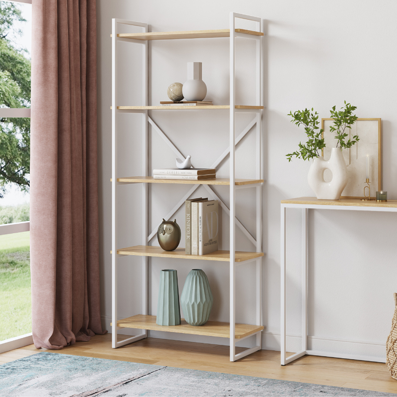Стеллаж LoftyHome Стеллаж Мальборк 80 Дуб Сонома с белым основанием лофт арт. 1627767
