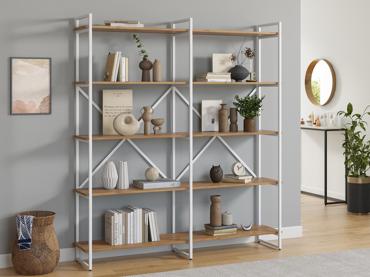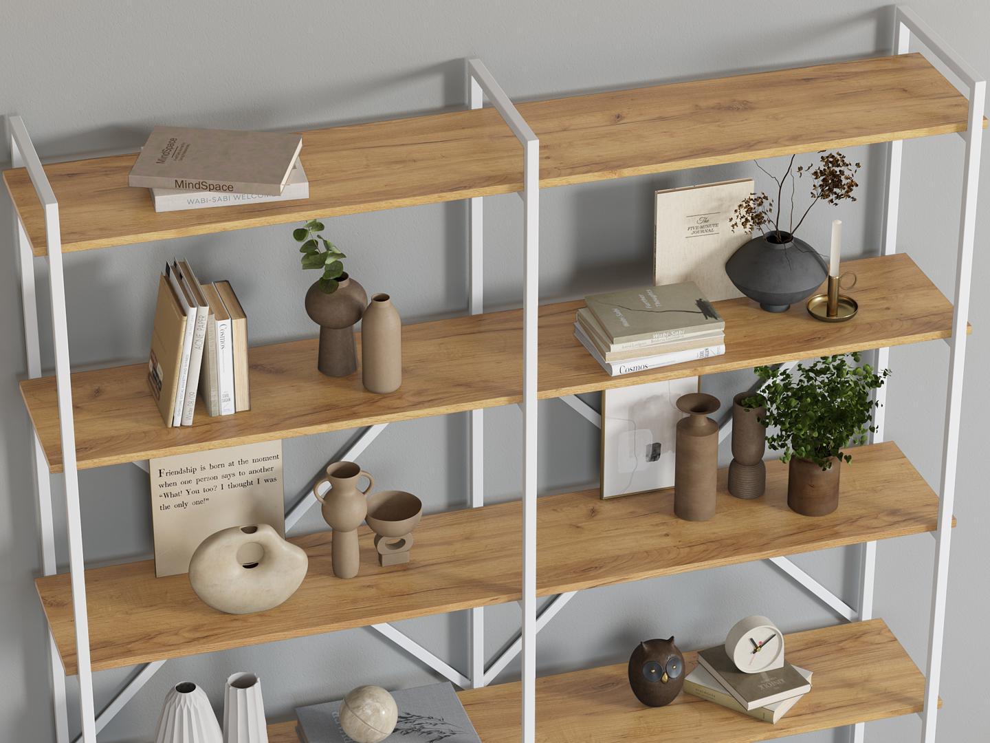 Стеллаж LoftyHome Стеллаж Мальборк 160 Дуб с белым основанием лофт арт. 1627890