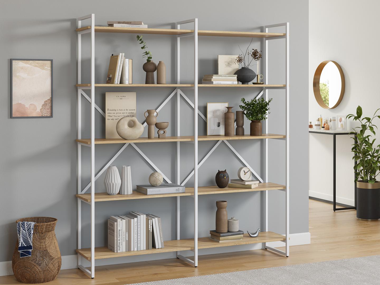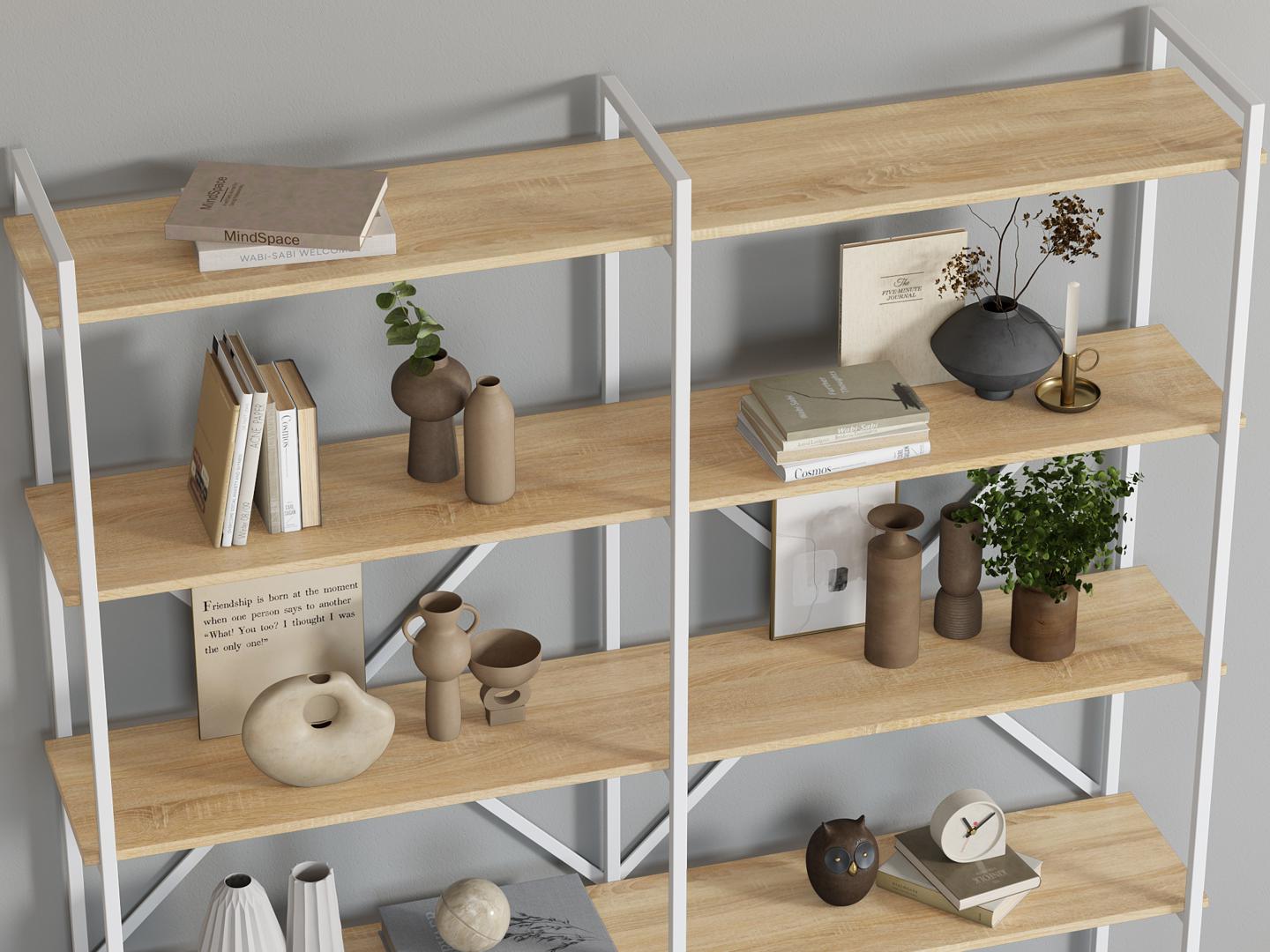 Стеллаж LoftyHome Стеллаж Мальборк 160 Дуб Сонома с белым основанием лофт арт. 1627893