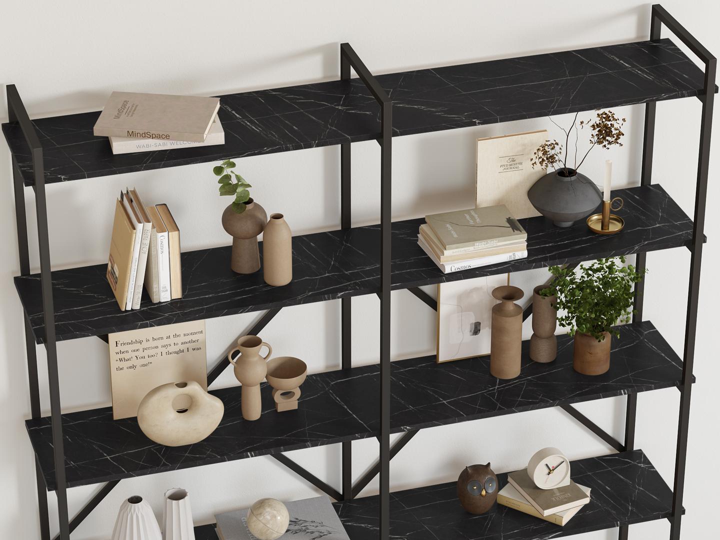Стеллаж LoftyHome Стеллаж Мальборк 160 Мрамор Блэк лофт арт. 1628025