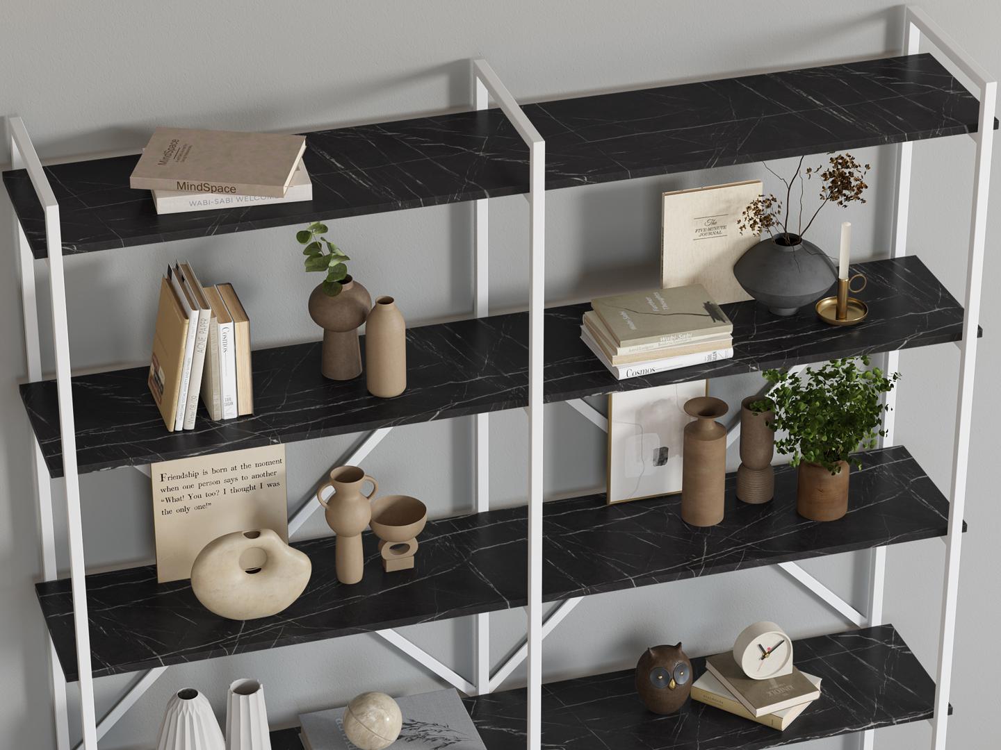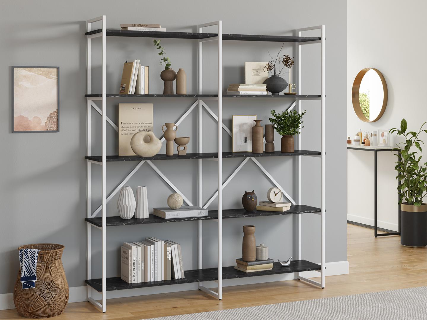 Стеллаж LoftyHome Стеллаж Мальборк 160 Мрамор Блэк с белым основанием лофт арт. 1628026