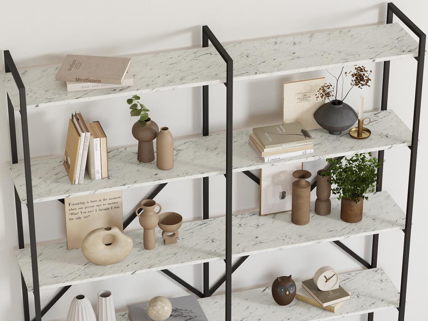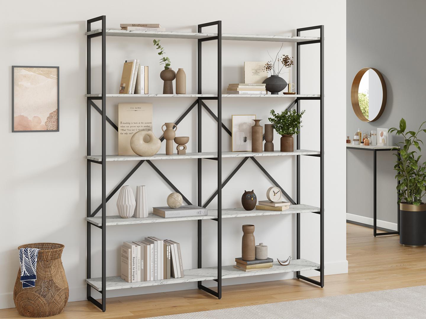 Стеллаж LoftyHome Стеллаж Мальборк 160 Мрамор Сноу лофт арт. 1628027