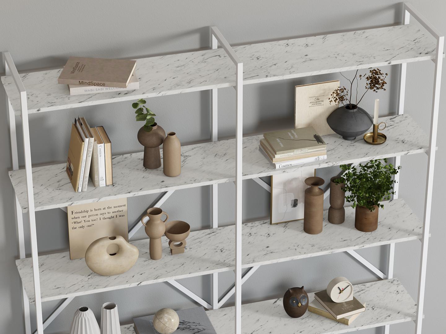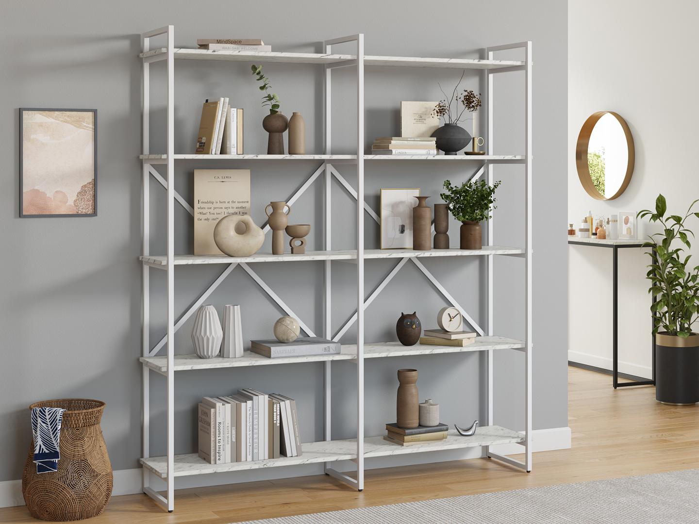 Стеллаж LoftyHome Стеллаж Мальборк 160 Мрамор Сноу с белым основанием лофт арт. 1628028