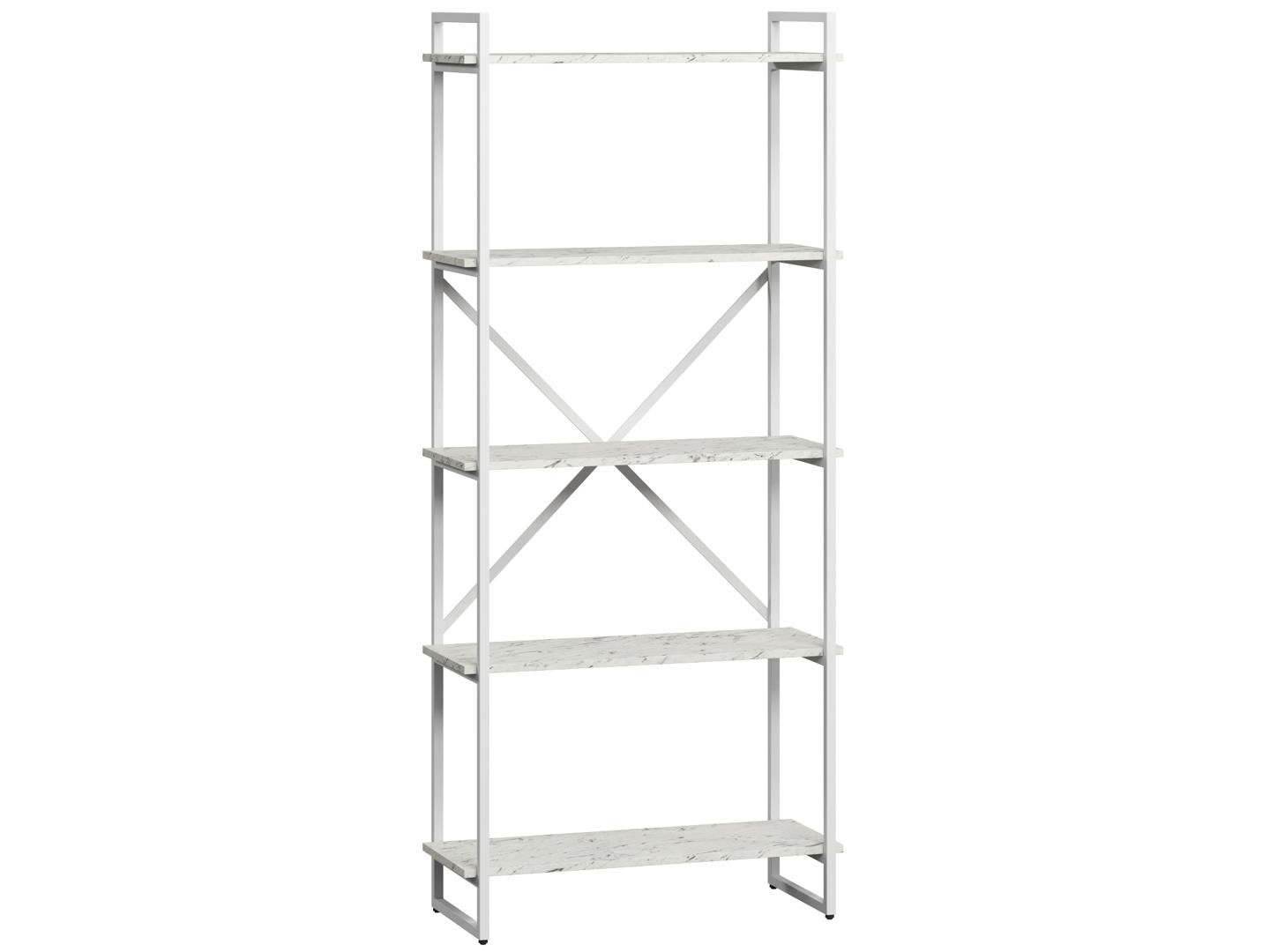 Стеллаж LoftyHome Стеллаж Мальборк 80 Мрамор Сноу с белым основанием лофт арт. 1628045