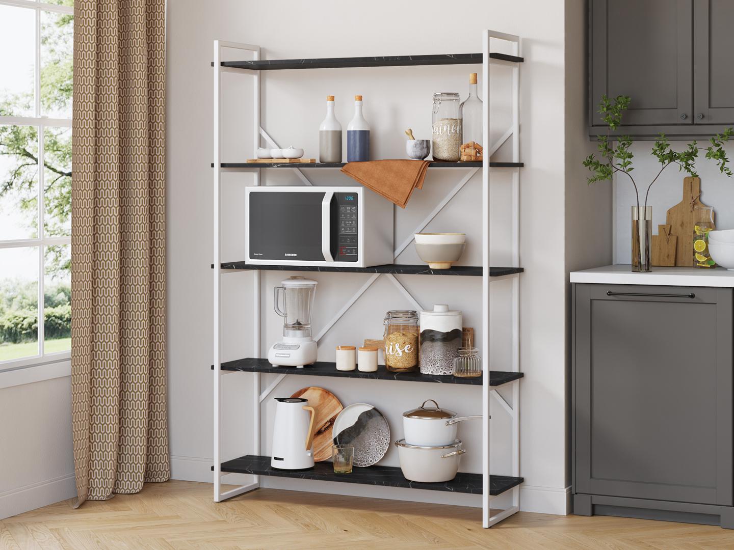 Стеллаж Мальборк 120 Мрамор Блэк с белым основанием