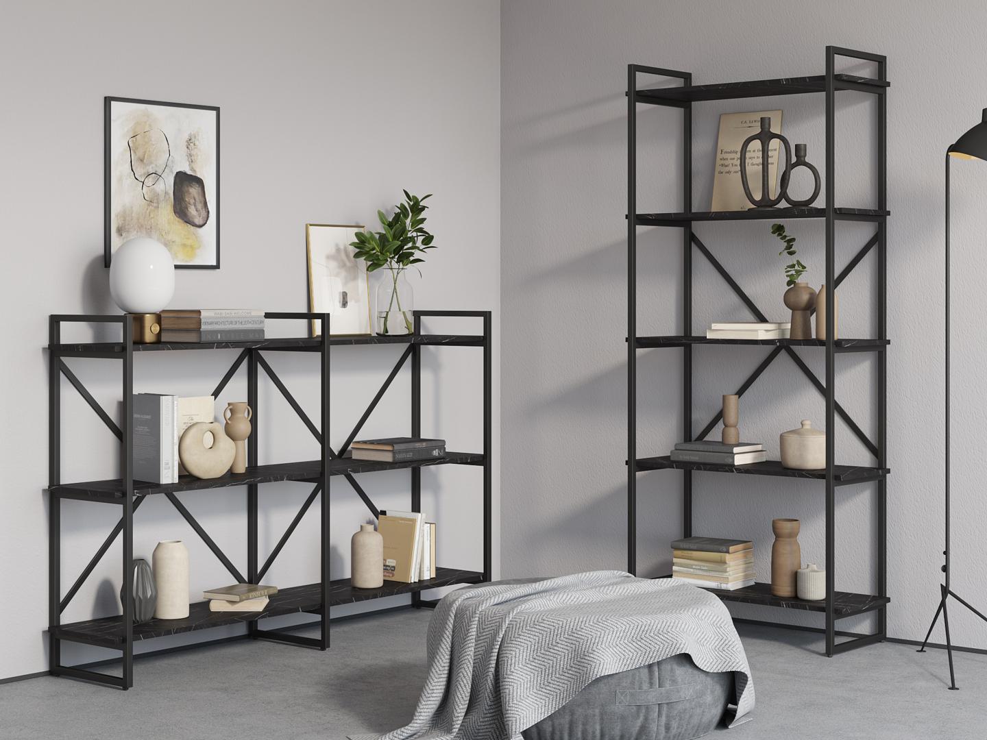 Стеллаж LoftyHome Стеллаж Мальборк Рант 160 Мрамор Блэк лофт арт. 1628076