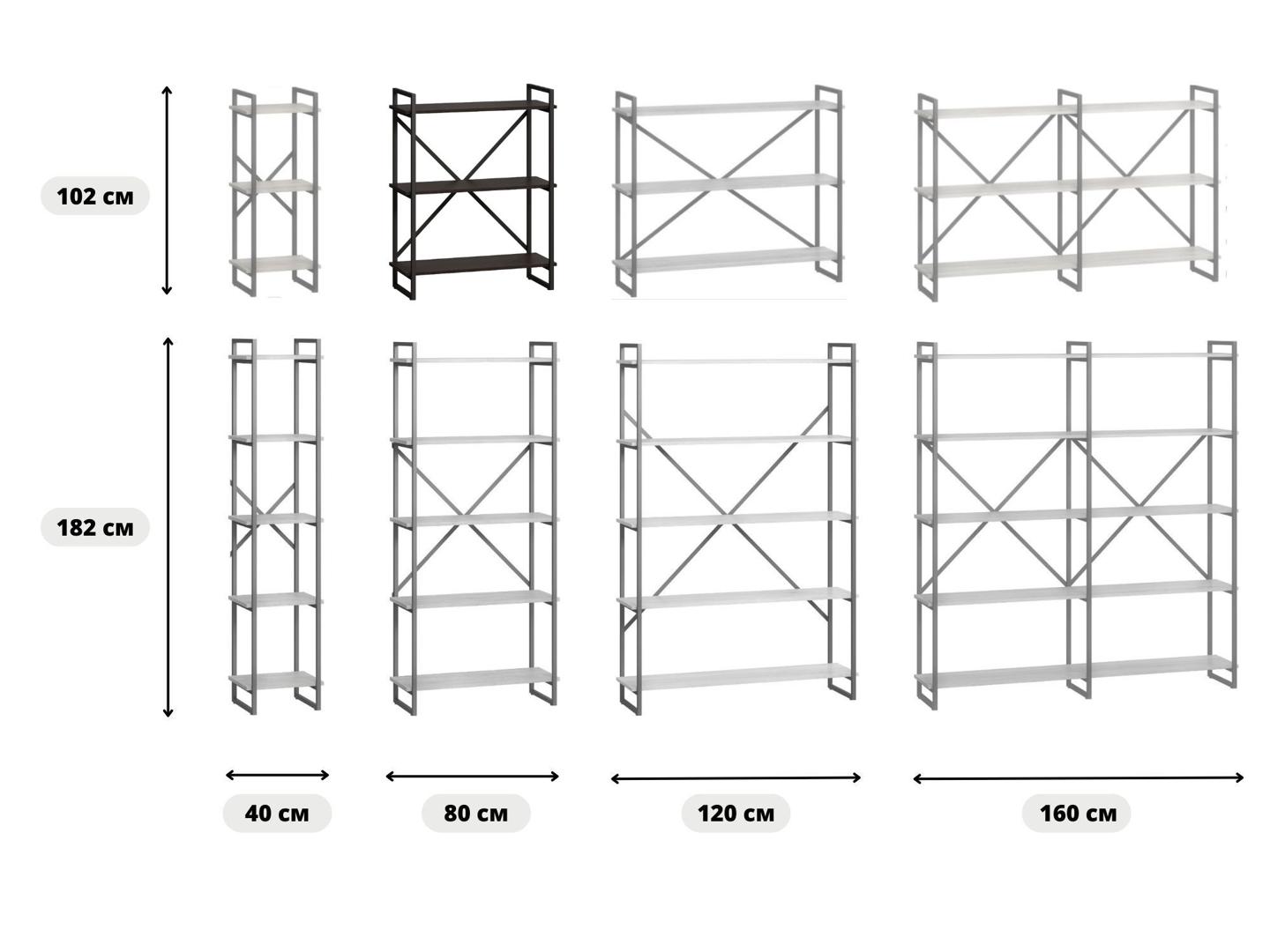 Стеллаж LoftyHome Стеллаж Мальборк Рант 120 Шимо Темный с белым основанием лофт арт. 1628080