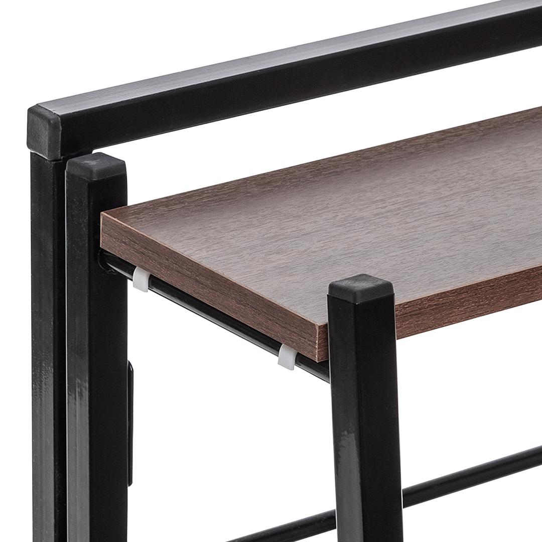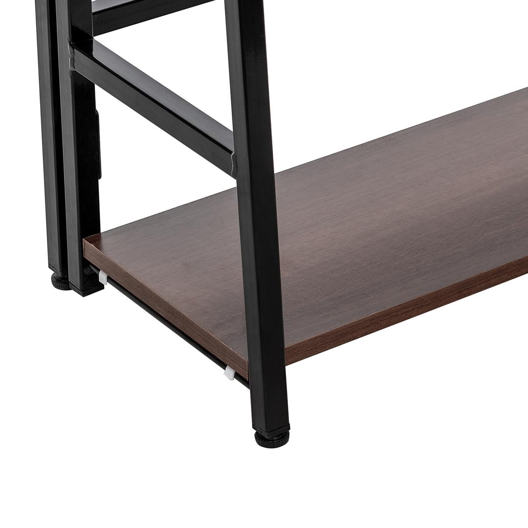 Раскладной стеллаж-трапеция Leset Пако 800 в стиле лофт – идеальное решение для продуманной организации пространства, хранения предметов офисного и домашнего быта. Компактный и легкий – его вес всего 9 кг. Соберите стеллаж за 10 минут без дополнительного инструмента! Он имеет устойчивый металлический каркас, оборудован полками из ЛДСП толщиной 16 мм и размерами (сверху вниз) 590х150, 590х180, 590х210 мм. В высоте 10 мм заложено на регулируемую опору. Ножки защищают пол от повреждений и оснащены регулируемыми по высоте опорами. Конструктив модели исключает расшатывание крепежных элементов и выдерживает большие нагрузки (до 20 кг на полку). Специальное покрытие защищает поверхности от образования царапин и механических повреждений.