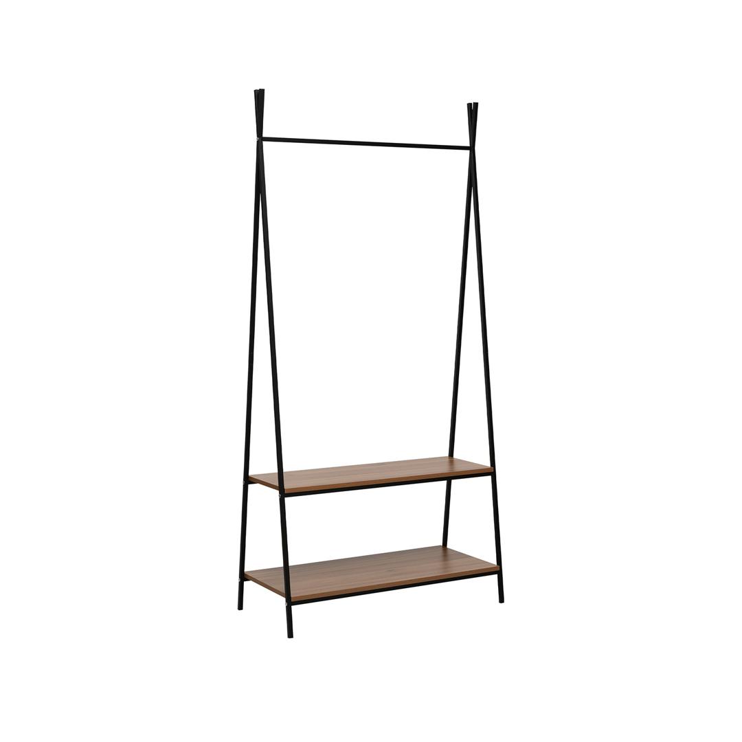 Компактная вешалка Leset Стилвуд станет настоящим помощником в организации пространства прихожей. Она упорядочит верхнюю одежду и аксессуары, сэкономит ваше время при сборах и освободит драгоценные квадратные метры в небольшой прихожей. Прочная металлическая рама оснащена удобной перекладиной для плечиков и двумя вместительными полками для обуви и сумок. Всё необходимое всегда под рукой. Вешалка собирается за 10 минут и отличается устойчивостью даже при интенсивной ежедневной эксплуатации. Минималистичный дизайн в стиле лофт придаст интерьеру особый стиль и продуманность. Высокая, но узкая конструкция идеально подходит для небольших пространств, при этом позволяя разместить более 10 вешалок. Два уровня полок помогут систематизировать обувь, коробки и аксессуары. Чёрная металлическая рама в сочетании с коричневыми, белыми и черными деревянными полками создаёт эффектный контраст и органично вписывается как в современные, так и в классические интерьеры.