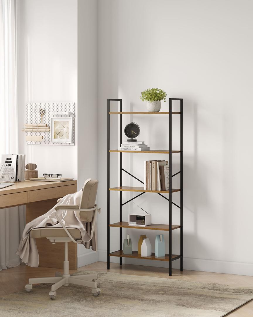 Компактный стеллаж на 5 полок Leset Стилвуд — практичный и стильный элемент для дома и офиса. Каркас из металлического профиля 1,5 см, толщина 0,1 см с порошковым покрытием обеспечивает жёсткость и долговечность; крестовина жесткости и крепление к стене добавляют стабильности и безопасности. Полки из ЛДСП толщиной 1,6 см легко чистятся, устойчивы к царапинам и выдерживают до 20 кг каждая. Нижняя полка имеет возможность крепления на разных высотах — удобно для высоких вещей или создания композиции. Маленькая плоская упаковка делает стеллаж лёгким в переноске и сборке. Универсальный дизайн впишется в любой интерьер: 4 декора (чёрный, дуб крафт, орех, белый) и 2 цвета каркаса (белый, чёрный).