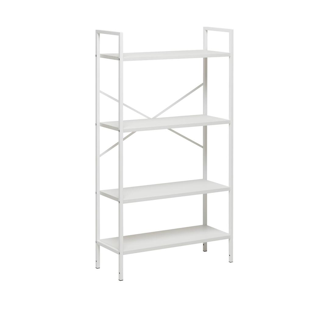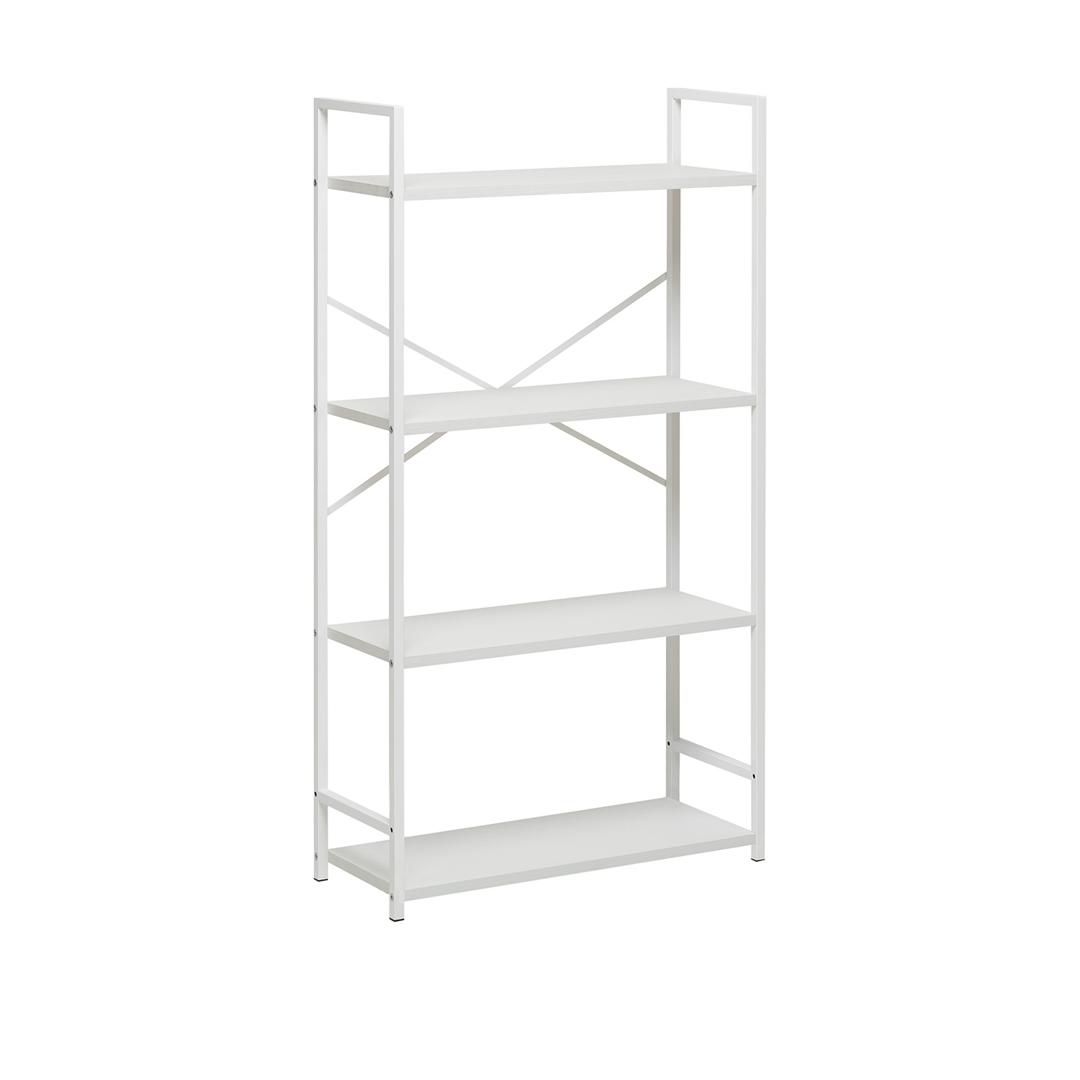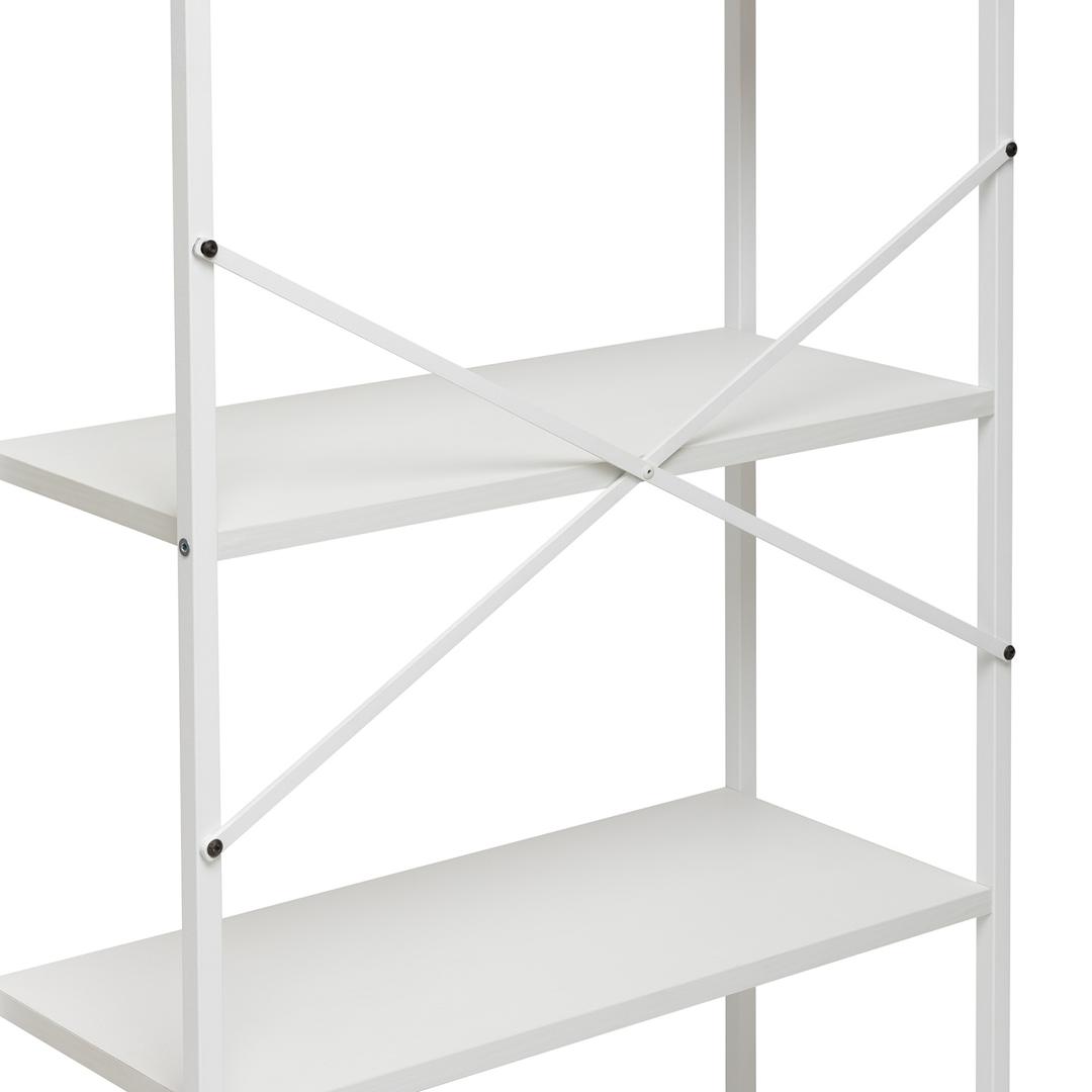 Компактный стеллаж на 4 полки Leset Стилвуд — практичный и стильный элемент для дома и офиса. Каркас из металлического профиля 1,5 см, толщина 0,1 см с порошковым покрытием обеспечивает жёсткость и долговечность; крестовина жесткости и крепление к стене добавляют стабильности и безопасности. Полки из ЛДСП толщиной 1,6 см легко чистятся, устойчивы к царапинам и выдерживают до 20 кг каждая. Нижняя полка имеет возможность крепления на разных высотах — удобно для высоких вещей или создания композиции. Маленькая плоская упаковка делает стеллаж лёгким в переноске и сборке. Универсальный дизайн впишется в любой интерьер: 4 декора (чёрный, дуб крафт, орех, белый) и 2 цвета каркаса (белый, чёрный).