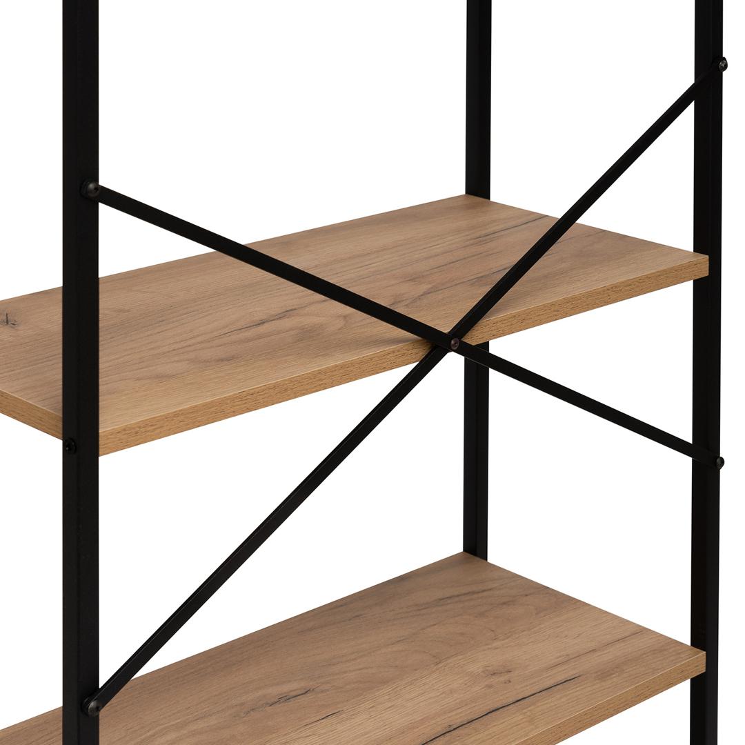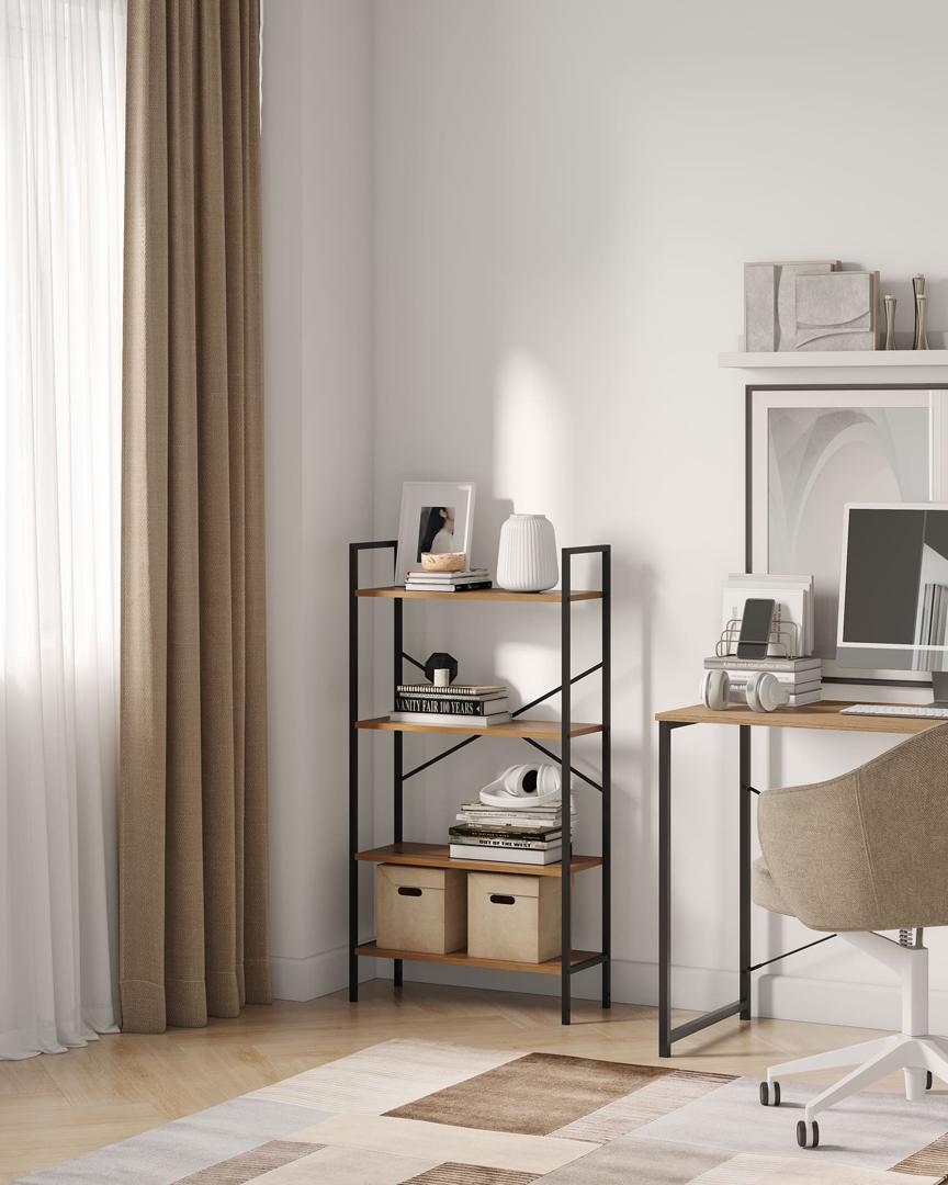 Компактный стеллаж на 4 полки Leset Стилвуд — практичный и стильный элемент для дома и офиса. Каркас из металлического профиля 1,5 см, толщина 0,1 см с порошковым покрытием обеспечивает жёсткость и долговечность; крестовина жесткости и крепление к стене добавляют стабильности и безопасности. Полки из ЛДСП толщиной 1,6 см легко чистятся, устойчивы к царапинам и выдерживают до 20 кг каждая. Нижняя полка имеет возможность крепления на разных высотах — удобно для высоких вещей или создания композиции. Маленькая плоская упаковка делает стеллаж лёгким в переноске и сборке. Универсальный дизайн впишется в любой интерьер: 4 декора (чёрный, дуб крафт, орех, белый) и 2 цвета каркаса (белый, чёрный).