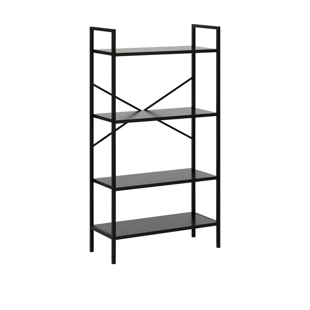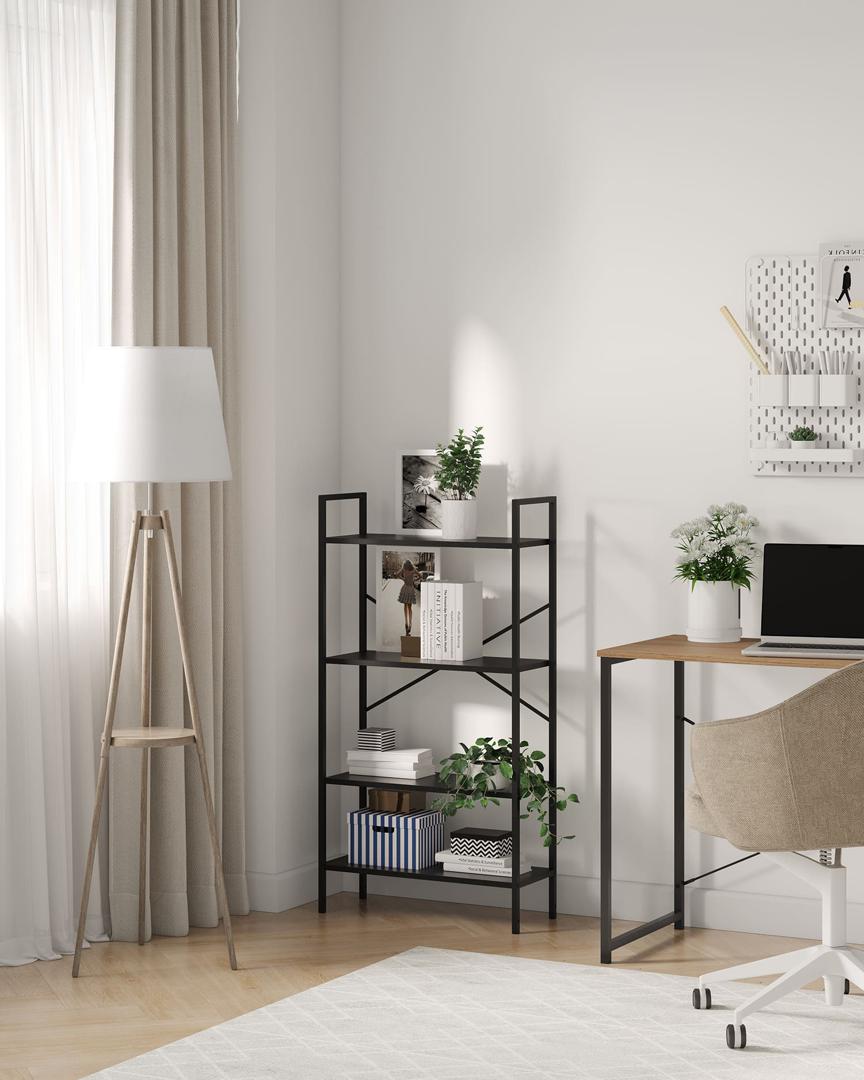 Компактный стеллаж на 4 полки Leset Стилвуд — практичный и стильный элемент для дома и офиса. Каркас из металлического профиля 1,5 см, толщина 0,1 см с порошковым покрытием обеспечивает жёсткость и долговечность; крестовина жесткости и крепление к стене добавляют стабильности и безопасности. Полки из ЛДСП толщиной 1,6 см легко чистятся, устойчивы к царапинам и выдерживают до 20 кг каждая. Нижняя полка имеет возможность крепления на разных высотах — удобно для высоких вещей или создания композиции. Маленькая плоская упаковка делает стеллаж лёгким в переноске и сборке. Универсальный дизайн впишется в любой интерьер: 4 декора (чёрный, дуб крафт, орех, белый) и 2 цвета каркаса (белый, чёрный).