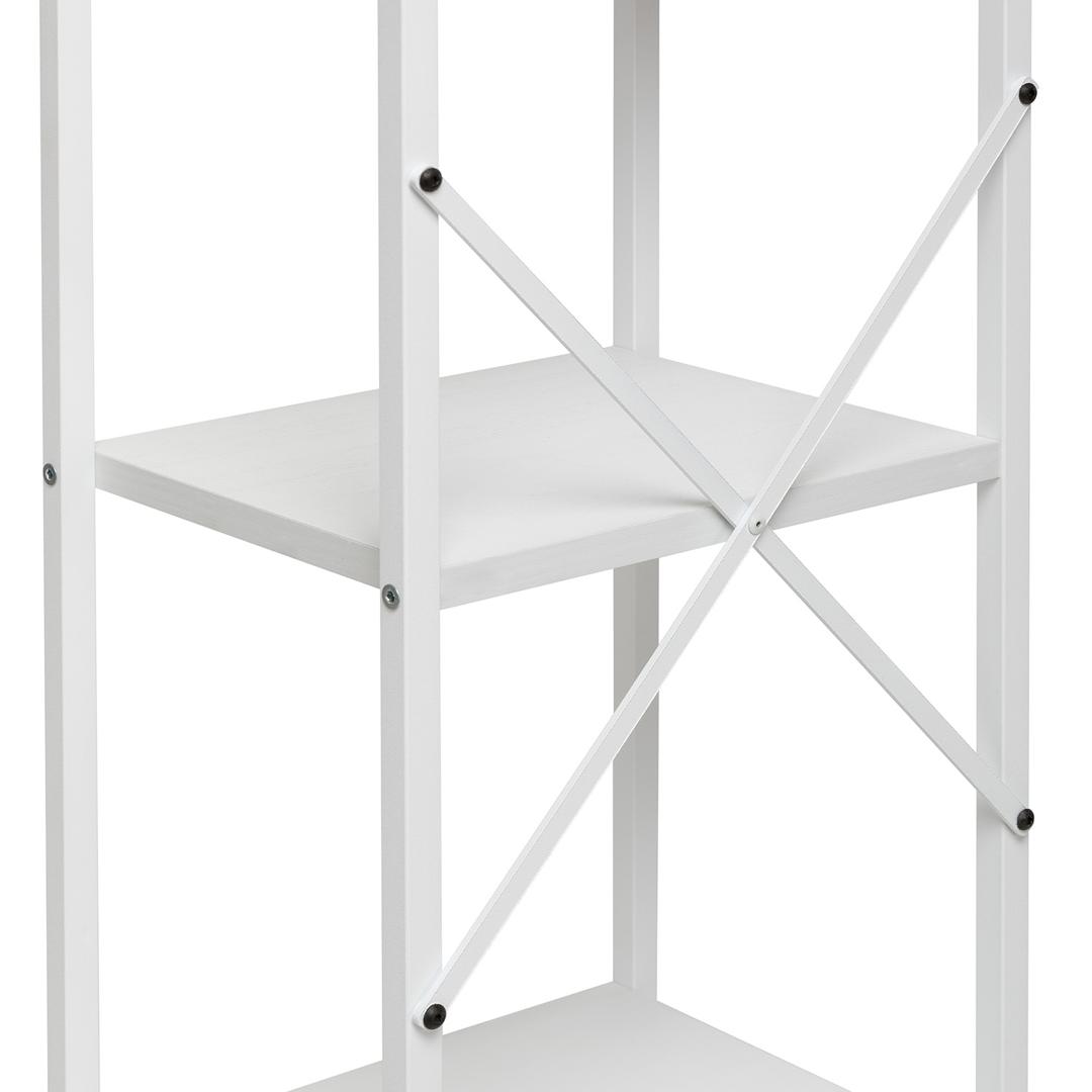 Компактный стеллаж на 4 полки Leset Стилвуд — практичный и стильный элемент для дома и офиса. Каркас из металлического профиля 1,5 см, толщина 0,1 см с порошковым покрытием обеспечивает жёсткость и долговечность; крестовина жесткости и крепление к стене добавляют стабильности и безопасности. Полки из ЛДСП толщиной 1,6 см легко чистятся, устойчивы к царапинам и выдерживают до 20 кг каждая. Нижняя полка имеет возможность крепления на разных высотах — удобно для высоких вещей или создания композиции. Маленькая плоская упаковка делает стеллаж лёгким в переноске и сборке. Универсальный дизайн впишется в любой интерьер: 4 декора (чёрный, дуб крафт, орех, белый) и 2 цвета каркаса (белый, чёрный).