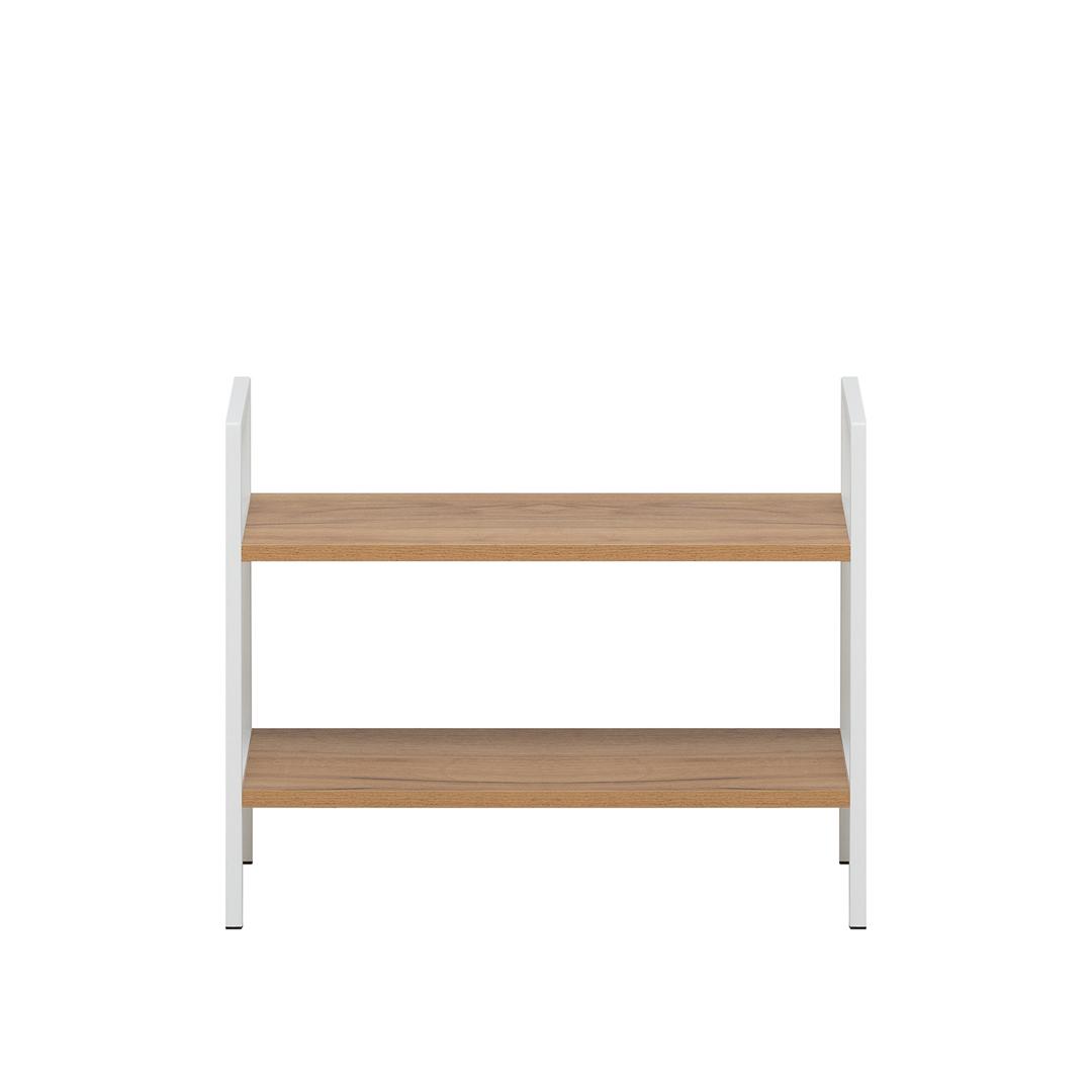 Компактный стеллаж Leset Стилвуд на двух полках — простое и надежное решение для дома и офиса. Каркас из металлического профиля 1,5 см (толщина 0,1 см) с порошковым покрытием гарантирует устойчивость и защиту от коррозии, а строгие прямые линии впишутся в любой интерьер — от минимализма до лофта. Нижняя полка крепится на разных высотах, что позволяет адаптировать стеллаж под книги, технику или корзины. Полки из ЛДСП толщиной 1,6 см легко чистятся, устойчивы к царапинам и выдерживают до 20 кг каждая. Маленькая плоская упаковка делает перенос и транспортировку удобными — легко нести в руках. Преимущества: прочность, универсальность, экономия места и аккуратный внешний вид без лишних деталей.