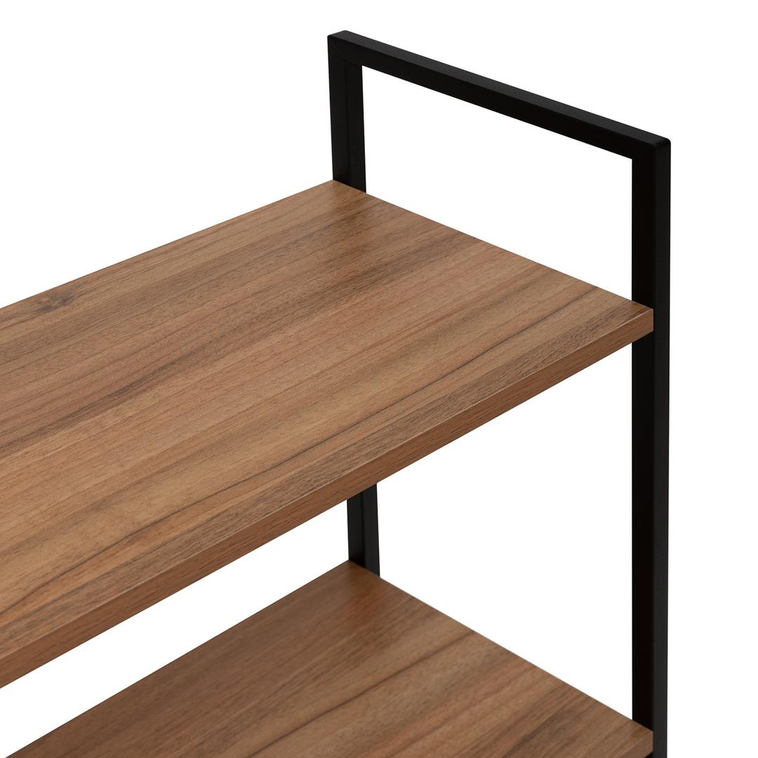 Компактный стеллаж Leset Стилвуд на двух полках — простое и надежное решение для дома и офиса. Каркас из металлического профиля 1,5 см (толщина 0,1 см) с порошковым покрытием гарантирует устойчивость и защиту от коррозии, а строгие прямые линии впишутся в любой интерьер — от минимализма до лофта. Нижняя полка крепится на разных высотах, что позволяет адаптировать стеллаж под книги, технику или корзины. Полки из ЛДСП толщиной 1,6 см легко чистятся, устойчивы к царапинам и выдерживают до 20 кг каждая. Маленькая плоская упаковка делает перенос и транспортировку удобными — легко нести в руках. Преимущества: прочность, универсальность, экономия места и аккуратный внешний вид без лишних деталей.