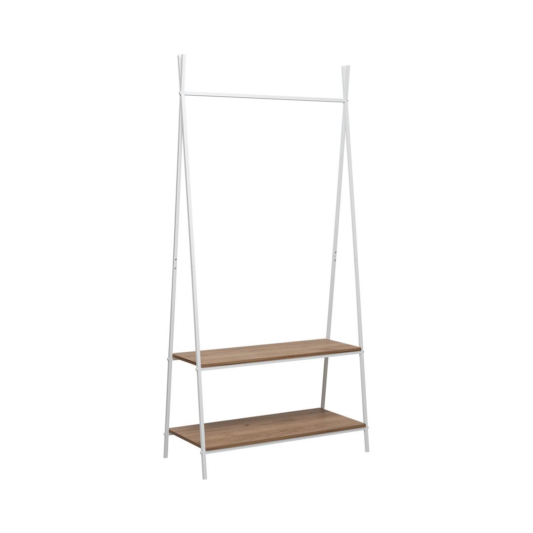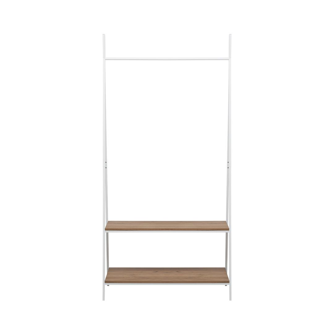 Компактная вешалка Leset Стилвуд станет настоящим помощником в организации пространства прихожей. Она упорядочит верхнюю одежду и аксессуары, сэкономит ваше время при сборах и освободит драгоценные квадратные метры в небольшой прихожей. Прочная металлическая рама оснащена удобной перекладиной для плечиков и двумя вместительными полками для обуви и сумок. Всё необходимое всегда под рукой. Вешалка собирается за 10 минут и отличается устойчивостью даже при интенсивной ежедневной эксплуатации. Минималистичный дизайн в стиле лофт придаст интерьеру особый стиль и продуманность. Высокая, но узкая конструкция идеально подходит для небольших пространств, при этом позволяя разместить более 10 вешалок. Два уровня полок помогут систематизировать обувь, коробки и аксессуары. Чёрная металлическая рама в сочетании с коричневыми, белыми и черными деревянными полками создаёт эффектный контраст и органично вписывается как в современные, так и в классические интерьеры.