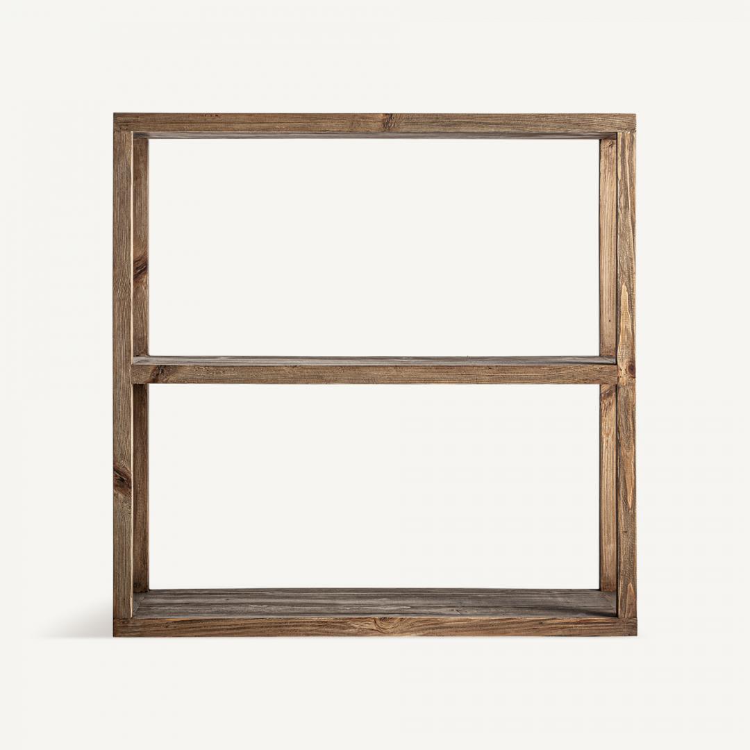 Стеллаж в колониальном стиле, изготовлен из переработанной сосновой древесины коричневого цвета.