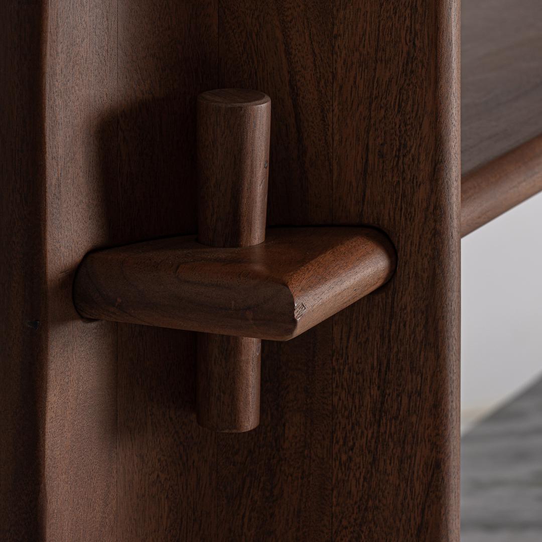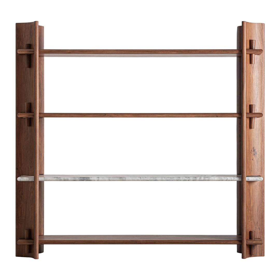 Книжная полка, изготовленная из акации коричневого цвета в сочетании с белым мрамором. Ширина: 185 см, Глубина: 48 см, Высота: 174 см