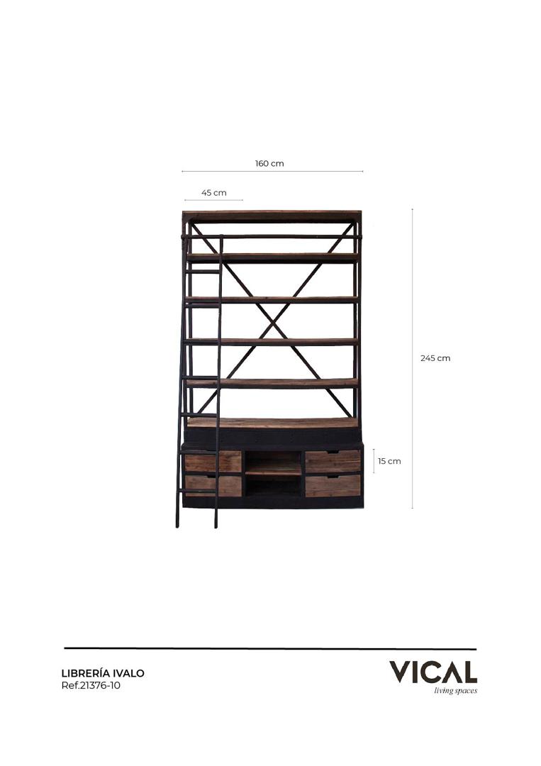 Преобразите свое пространство с помощью книжного шкафа Ivalo от VICAL home. Этот предмет мебели размером 160x45x245 см сочетает в себе переработанную сосновую древесину и железо в черных и натуральных тонах, создавая индустриальную эстетику, которая выделяется в любом помещении. Благодаря входящей в комплект лестнице, доступ к верхним полкам этого индустриального книжного шкафа очень удобен. Ivalo — идеальный вариант для тех, кто ценит дизайн, экологичность и функциональность. Ширина: 160 см, Глубина: 45 см, Высота: 245 см