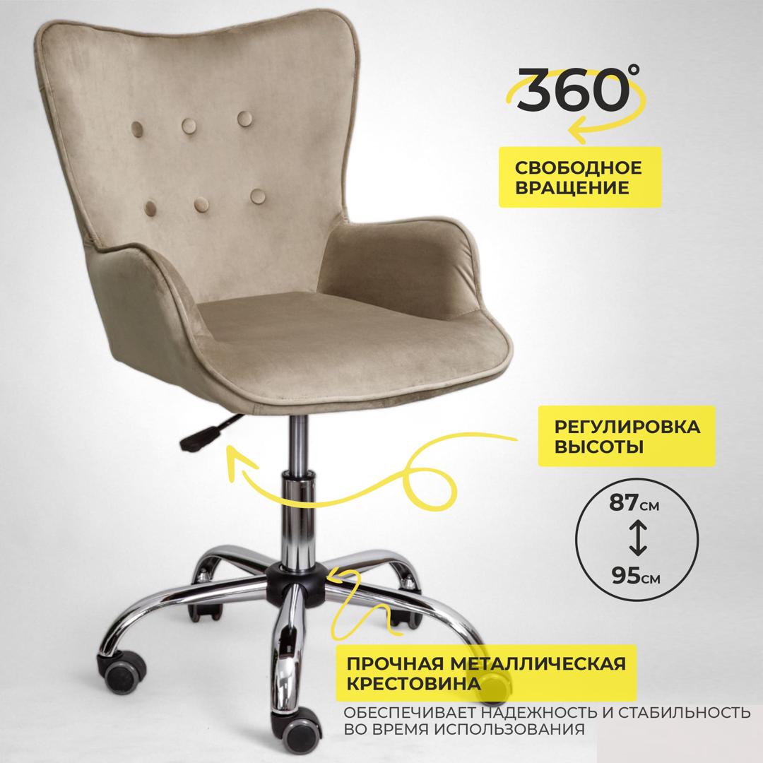 Кресло компьютерное AksHome Кресло поворотное Bella, бежевый, велюр арт. ZN-125877