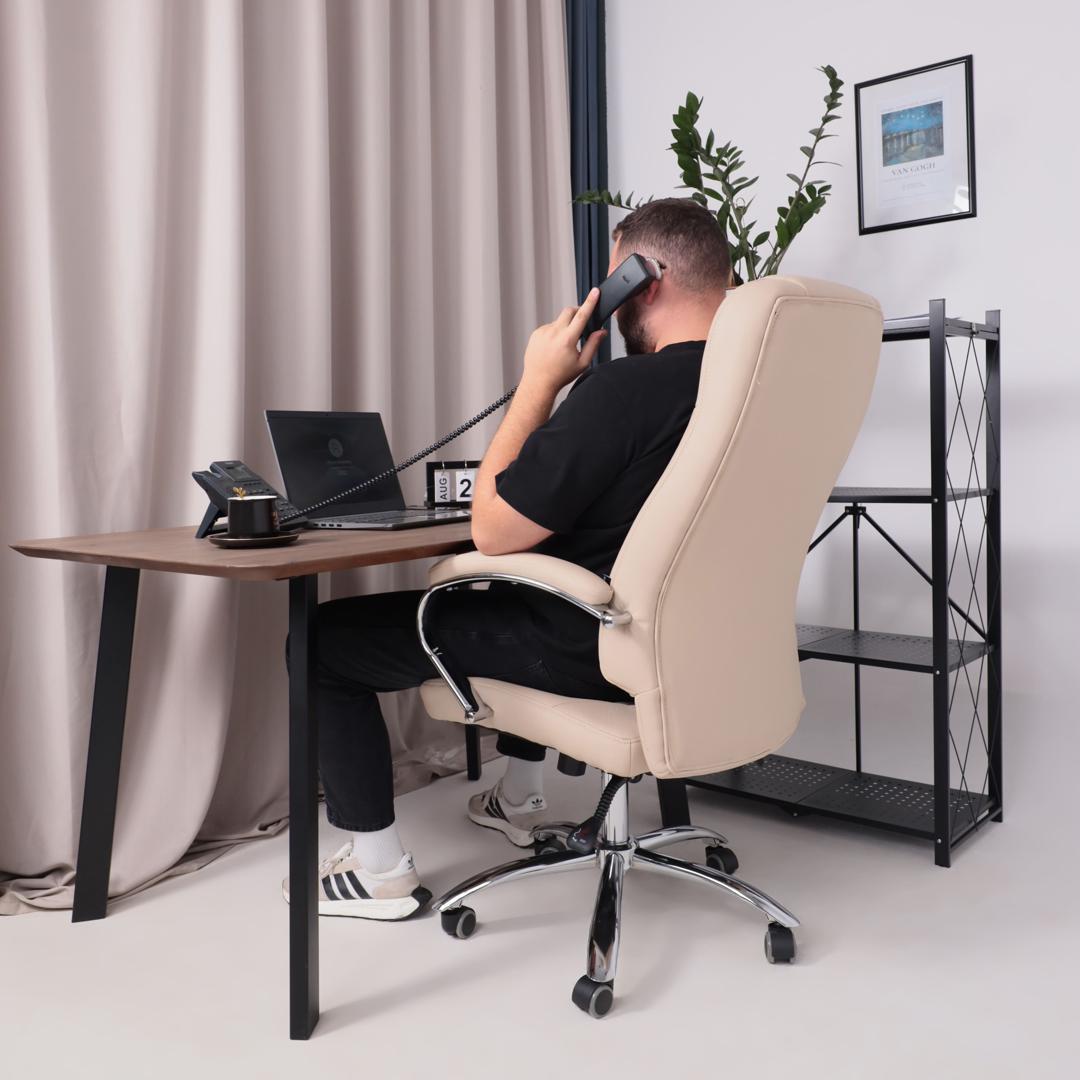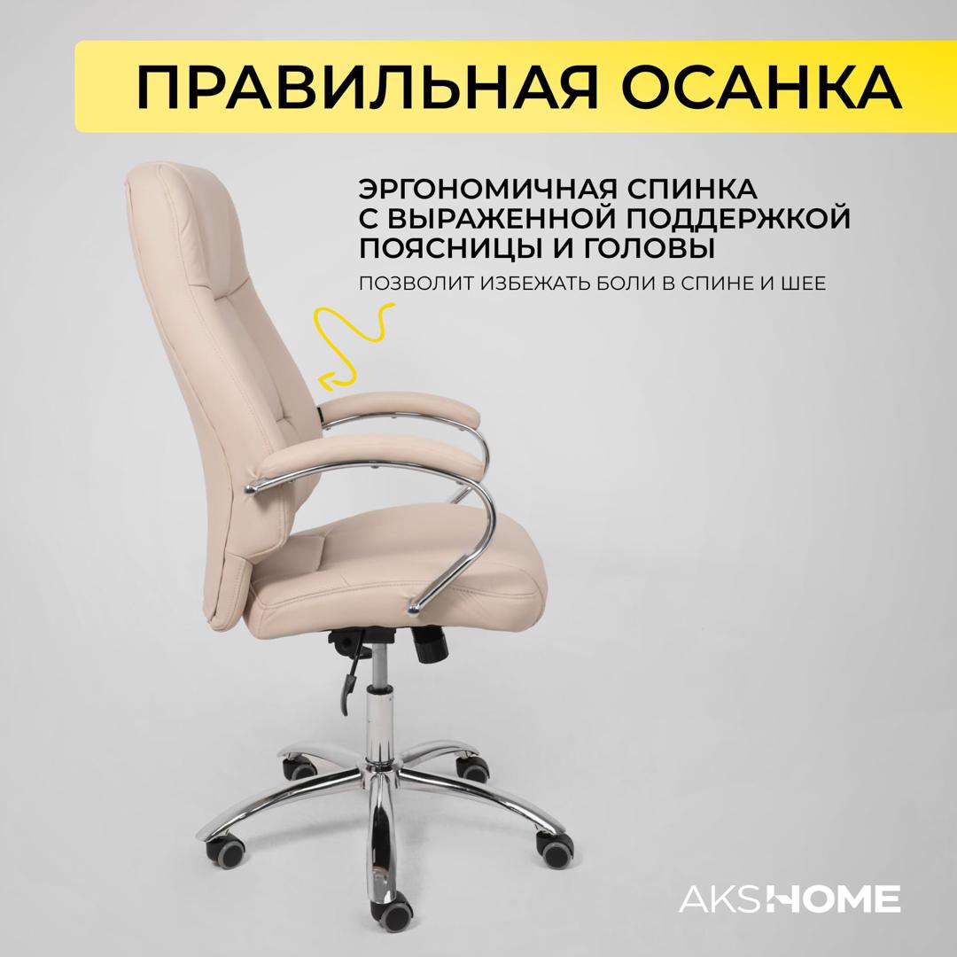 Кресло компьютерное AksHome Кресло поворотное King, бежевый, экокожа арт. ZN-125979